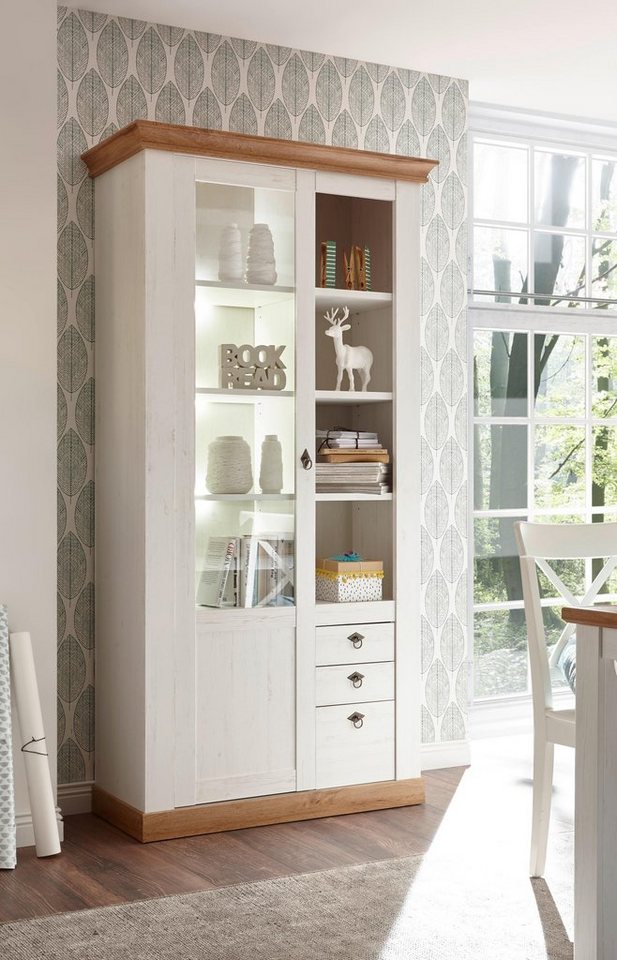 Die im Bicolor-Look gestaltete Vitrine »Cremona« von Home affaire beeindruckt mit einem aparten Design. Ihre Gestaltung passt zum beliebten Landhausstil, der mit natürlichen Materialien besticht. Auffällig sind insbesondere die farblich abgesetzte Rahmenoptik und die Metallgriffe an den Schubkästen und Türen der Standvitrine. Dieses Möbel wird aus FSC®-zertifiziertem Holzwerkstoff hergestellt. Seine Schubkästen sind mit Metallauszügen ausgestattet. Im Inneren des Schrankes steht viel Stauraum für das Aufbewahren von Geschirr, Dekorationen oder Büchern zur Verfügung. Mit der Vitrine »Cremona« im Bicolor-Look von Home affaire erhält jede Einrichtung eine praktische und formschöne Ergänzung.