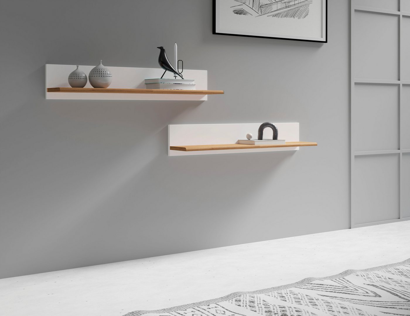 Zeitlos schön und zugleich praktisch ist das teilmassive Wandregal im 2er-Set. Ein ausgesprochen natürliches und sympathisches Ambiente zieht mit dem Regal im wohnlichen Zuhause ein. Dabei kann es in den unterschiedlichsten Räumen zum sehenswerten Einsatz kommen. Es bietet sich für das Wohnzimmer, die Diele und auch für das Homeoffice an. Ideal harmoniert es mit der Einrichtung im modernen Landhausstil. Als stabile Basis dient das FSC®-zertifizierte Holz mit Oberflächenveredelung und sichtbarer Struktur und Maserung. Das im 2er-Set gelieferte, teilmassive Wandregal ermöglicht eine kreative und praktische Wandgestaltung.