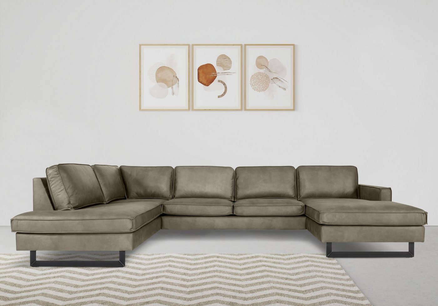 Stilvoll, komfortabel und individualisierbar: Mit diesen Attributen schmückt sich die Wohnlandschaft »Pinto« von Home Affaire of Style im modernen Design. Klare Linien und moderne Materialien prägen das Erscheinungsbild der Sofa-Landschaft. Zu den Gestaltungshighlights zählen die Kedern sowie die schicken Metallfüße in Kufenform. Der Bezug steht dir in mehreren Variante und Farben zur Auswahl. Auch die Platzierung der Ottomane kannst du bestimmen. Sie ist sowohl für rechts als auch links bestellbar. Dank der Wellenunterfederung bietet das Sofa einen hohen Sitzkomfort. Die Couch-Garnitur bietet dir und deinen Lieben extra viel Platz zum Entspannen, Fernsehen oder für Spieleabende. Für Stabilität sorgt der Unterbau aus einem FSC®-zertifizierten Holzwerkstoff. Du kannst die Wohnlandschaft »Pinto« von Home Affaire of Style im modernen Design mit unterschiedlichen Wohnkonzepten kombinieren.