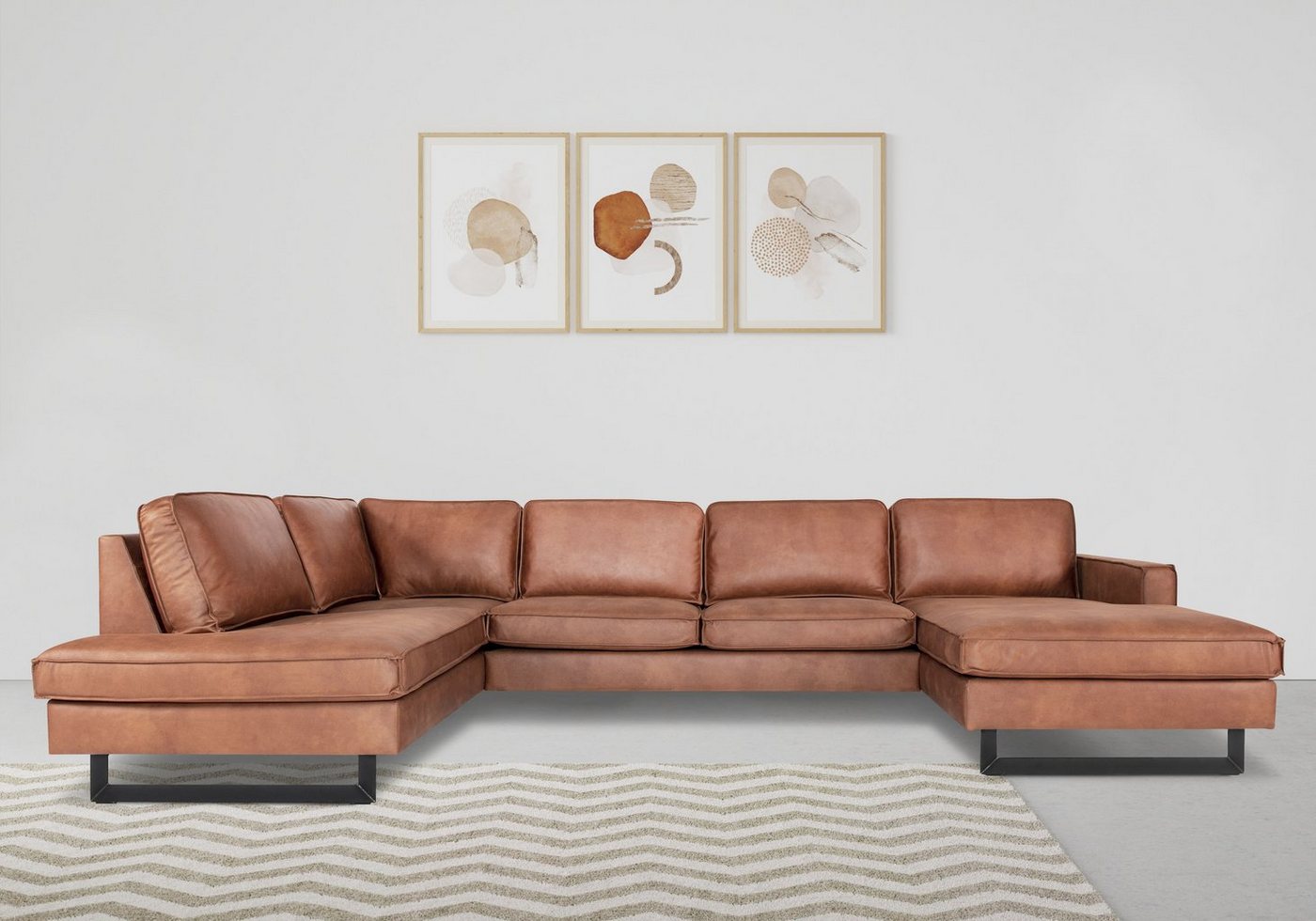 Stilvoll, komfortabel und individualisierbar: Mit diesen Attributen schmückt sich die Wohnlandschaft »Pinto« von Home Affaire of Style im modernen Design. Klare Linien und moderne Materialien prägen das Erscheinungsbild der Sofa-Landschaft. Zu den Gestaltungshighlights zählen die Kedern sowie die schicken Metallfüße in Kufenform. Der Bezug steht dir in mehreren Variante und Farben zur Auswahl. Auch die Platzierung der Ottomane kannst du bestimmen. Sie ist sowohl für rechts als auch links bestellbar. Dank der Wellenunterfederung bietet das Sofa einen hohen Sitzkomfort. Die Couch-Garnitur bietet dir und deinen Lieben extra viel Platz zum Entspannen, Fernsehen oder für Spieleabende. Für Stabilität sorgt der Unterbau aus einem FSC®-zertifizierten Holzwerkstoff. Du kannst die Wohnlandschaft »Pinto« von Home Affaire of Style im modernen Design mit unterschiedlichen Wohnkonzepten kombinieren.