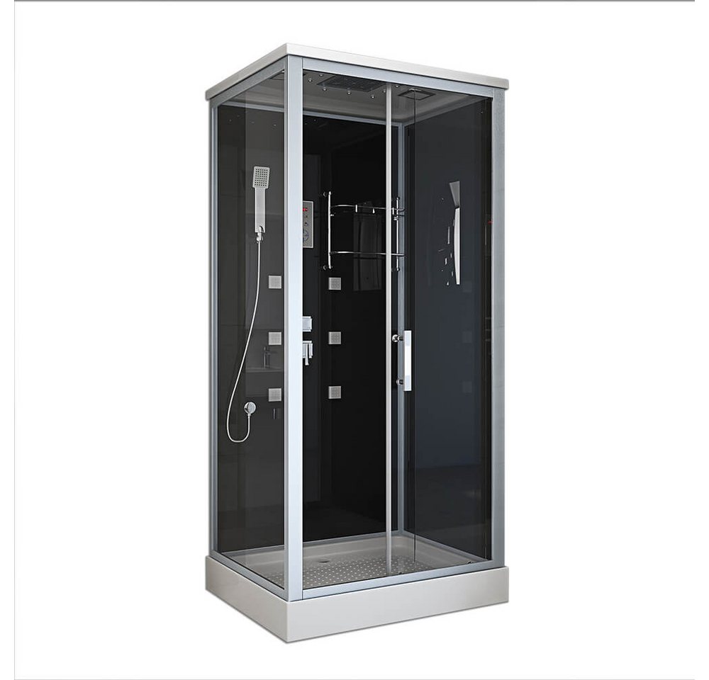 PRODUKTBESCHREIBUNG – sehr geräuscharmer Schiebelauf- Schiebetüren schließen durch die integrierten Magnetleisten bequem und dicht (Soft-Close Mechanismus)- Jetzt neu! Mit verbesserter Rollenführung- Bedienelement für Radio-/ Lichtfunktion und Abluft funktioniert über Touchscreen- integrierter Spiegel- pflegeleichte Oberfläche- einfacher Austausch einzelner Komponenten bei eventuellem Verschleiß- einfache Montage und Handhabung LIEFERUMFANG – Duschkabine WAVE L 100 x 80 cm- inkl. Glasregal- flexibler Abwasseranschluss (HT 40 mm als Ziehharmonikaschlauch) wird mitgeliefertBitte beachten: 2x 1/2",", Flexschläuche mit Überwurfmutter werden benötigt (in nahezu jedem ortsansässigen Baumarkt kostengünstig erhältlich) – Verpackung: in 3 handlichen Kartons sicher verpackt und auf Vollständigkeit überprüft- Paketmaße: Karton 1 200 x 100 x 5 cm, Karton 2 100 x 85 x 25 cm, Karton 3 200 x 80 x 10 cm DUSCHKABINE WAVE L – DATEN – bitte messen Sie nach, ob diese Duschkabine in den vorgesehenen Raum passt- ideal wäre ein gefliester Untergrund, aber er ist nicht zwingend notwendig, sondern eine Empfehlung- Sie benötigen einen Wasserablauf und Warm-/Kaltwasseranschluss- 1x gewöhnliche 220 V-Steckdose, wenn Sie die Beleuchtung und das Radio nutzen möchten, sonst auch ohne benutzbar- Mindestraumhöhe: ca. 235 cm werden für einen problemlosen Aufbau benötigt- 4 höhenverstellbare Füße, so dass die Duschwanne ca. 2 cm hoch- bzw. herunterschraubbar ist- arbeitet auch mit Durchlauferhitzer- Maße (BxTxH): 100 x 80 x 227 cm- Innenraumhöhe: ca. 200 cm- Einstiegshöhe: ca. 15 cm mit Rahmen- Einstiegsbreite: ca. 40 cm
