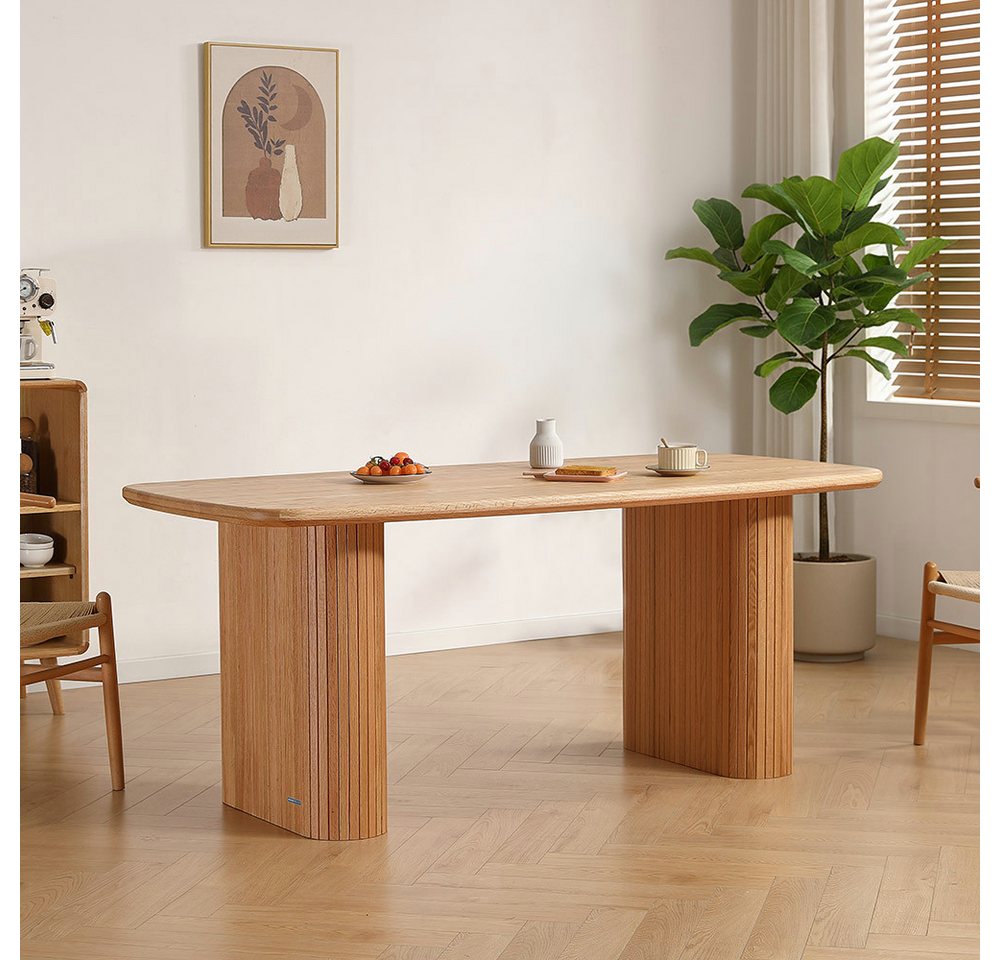 Entdecke den Esstisch Eiche geölt ARENOS – die perfekte Verbindung aus natürlicher Wärme und zeitloser Eleganz. Das massive geölte Eichenholz verleiht deinem Essbereich nicht nur eine hochwertige Haptik, sondern sorgt auch für eine lange Lebensdauer.Die feine Schweizer Kante schafft eine moderne, schwebende Optik, die dem Tisch Leichtigkeit und Stil verleiht. Dank seines klaren, eleganten Designs passt der ARENOS Esstisch perfekt in dein Zuhause, egal ob im Esszimmer, Büro oder Konferenzraum. Jede Oberfläche ist mit viel Liebe zum Detail verarbeitet – für ein hochwertiges Erscheinungsbild, das begeistert. Hol dir den Esstisch Eiche geölt ARENOS und genieße nachhaltige Qualität und zeitlose Schönheit bei jedem gemeinsamen Essen. Mach dein Zuhause zu etwas Besonderem! Produkteigenschaften Edles, widerstandsfähiges Naturmaterial mit hochwertiger HaptikSolide Bauweise, vermittelt Stabilität und ExklusivitätFeine, abgeschrägte Kante für eine moderne, schwebende OptikFlexibel einsetzbar, passend für kleinere wie auch größere RäumeKlassische Formensprache mit modernen DetailsDetailgenauigkeit und hochwertige OberflächenbehandlungTrotz Massivholz wirkt der Tisch dank der Kantenbearbeitung luftig und modern Technische Daten Gesamtmaße (L x B x H): 160 x 90 x 75 cmMaße Tischplatte (L x B x H): 160 x 90 x 4 cmStärke Tischplatte: 4 cmMaterial: EichenholzFarbe: NaturGewicht: 48,55 kg Lieferumfang 1 x Tischplatte2 x TischfüßeSchraubenpaketPaketmaße:Paket 1 (Tischplatte): 167 x 97 x 11 cmPaket 2 (Tischfüße): 64 x 77 x 46 cmPaketgewicht: 54,35 kg