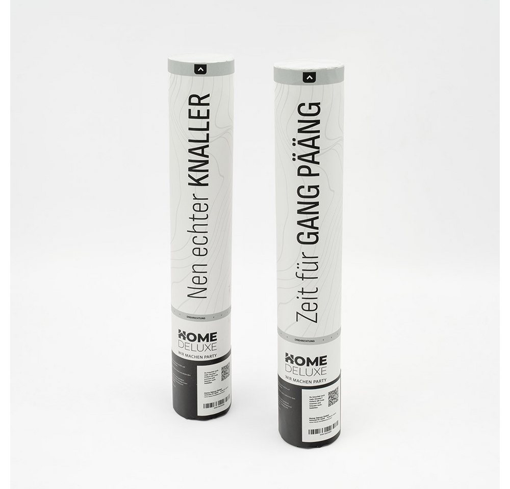 Mit der Konfettikanone BLAST wird jede Feier zum unvergesslichen Highlight! Ob Hochzeit, Geburtstag oder Silvester – ein lauter Knall und ein glänzender Konfettiregen sorgen für spektakuläre Momente, die in Erinnerung bleiben.Die BLAST überzeugt mit hochwertigem Konfetti aus strapazierfähigem Material und einer stilvollen Beschriftung in Weiß, die den exklusiven Home Deluxe-Touch unterstreicht. Im Set erhältst du gleich zwei Kanonen für doppelten Spaß! Dank der edlen Verpackung eignet sich die BLAST auch hervorragend als Geschenk. Die kinderleichte Bedienung macht sie sofort einsatzbereit – perfekt für Überraschungen, die beeindrucken. Der kraftvolle Knall garantiert maximale Aufmerksamkeit, während das schillernde Konfetti eine magische Atmosphäre zaubert.Mach deine Party unvergesslich und hole dir jetzt die Konfettikanone BLAST von Home Deluxe! Perfekt für jeden Anlass, einfach in der Anwendung und ein Must-Have für jedes Event. Lass die Feier knallen – im wahrsten Sinne des Wortes! Technische Daten Maße pro Kanone (L x B x H): 31,5 x 10,5 x 5 cmMaterial: FolieFarbe: Blau/WeißGewicht pro Kanone: 0,815 kg Produkteigenschaften Erzeuge unvergessliche Momente mit einem lauten Knall und einem beeindruckenden KonfettiregenIm Set enthalten: Zwei Konfettikanonen für doppelten Spaß und doppelten Effekt!Stilvoll verpackt, perfekt als Geschenk oder für besondere AnlässeSofort einsatzbereit – kinderleicht zu bedienen, keine Vorbereitung nötigIdeal für Geburtstage, Hochzeiten, Silvester und Überraschungspartys Lieferumfang 2 x Konfettikanone
