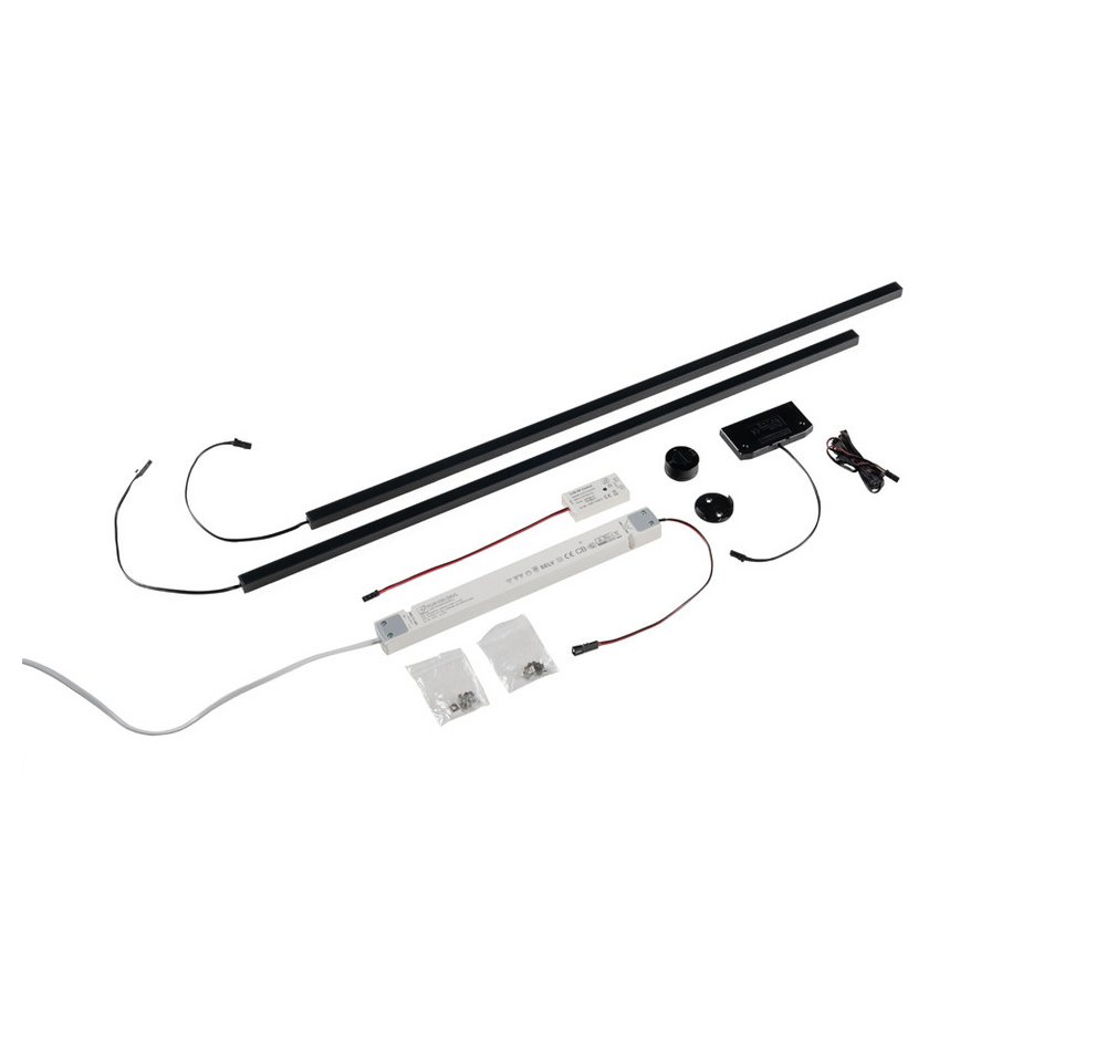 Ein besonderer Vorteil unserer Beleuchtung ist, dass sie durch die schwarzen Abdeckungen auch dann gut aussieht, wenn sie ausgeschaltet ist, da sich die Leisten nahtlos in den Raum einfügen und praktisch unsichtbar wirken – im Gegensatz zu Mitbewerbern, deren helle Abdeckungen als störender Faktor auffallen, sobald die Beleuchtung aus ist. Die Montage ist dank des doppelseitigen Klebebands auf der Rückseite schnell und einfach erledigt – so kannst du im Handumdrehen deine Räume in neuem Licht erstrahlen lassen. Ein besonderes Highlight ist die flexible Anpassung der Lichtfarbe: Wechsle stufenlos zwischen warmweiß, neutralweiß und kaltweiß, um immer die perfekte Beleuchtung für jede Stimmung und jeden Anlass zu finden. Zudem ist die Lichtleiste dimmbar, was dir noch mehr Kontrolle über die Lichtintensität gibt und dir erlaubt, genau die Atmosphäre zu schaffen, die du dir wünschst. LED-Lichtleiste NOXMaße (L x B x H): 100 x 1,2 x 1,2 cm pro LichtleisteAluminiumprofil: in Schwarz MattOpale Abdeckung: in SchwarzVerbaute Zuleitung: 20 cmLichtfarbe: warmweiß, neutralweiß, kaltweiß (2700 – 6500 K)Verbaute Endkappen: 2Befestigungsclips: 6Verlängerungskabel: 2 x 180 cmSpannung: 24V DCLeistung: 6,4 W Funkset NOXMaße (L x B x H): 9 x 3 x 1,3 cmFunkfernbedienung: 2,4 GHzFunkempfänger: 72 W, 24 V LED-Netzteil NOXMaße (L x B x H): 28,4 x 3 x 1,6 cm Leistung: 100 W ACSpannung: 24V DCPrimärleitung: 150 cmSekundärleitung: 20 cmVerteiler: 9-Fach mit 20 cm Zuleitung Lieferumfang 2 x LED-Lichtleiste 100 cm6 x Befestigungsclips inkl. Schrauben2 x Verlängerungskabel 180 cm9-Fach VerteilerFunksetLED-NetzteilMontageanleitung