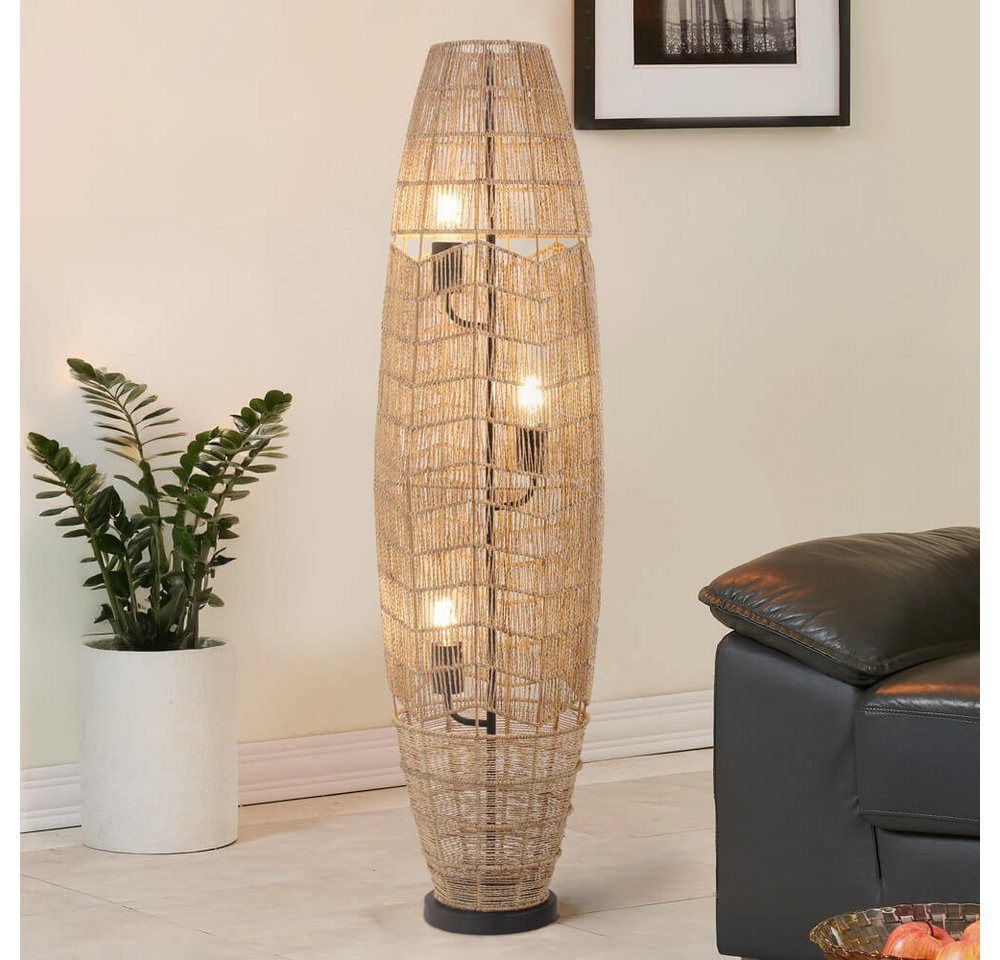 HOME DELUXE Stehlampe KIKO, Lampenschirm aus geflochtener...