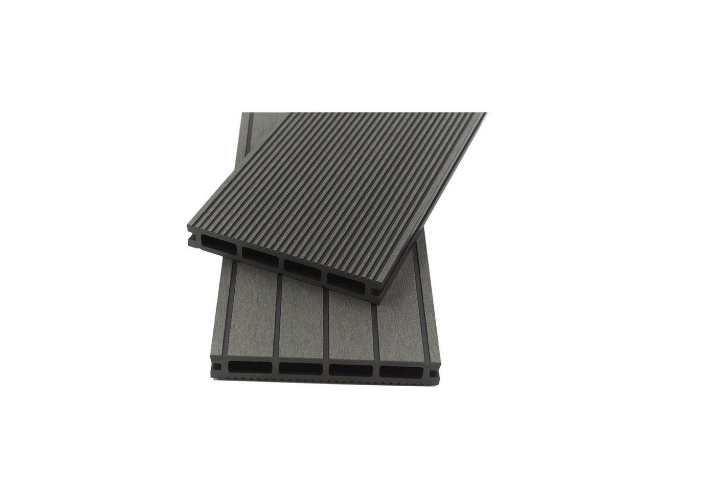 WPC Dielen SAMANA hellgrau – Verwandeln Sie Ihre Terrasse und Balkon in einen einzigartigen Wohlfühlort Mit unseren WPC Dielen wird Ihre Terrasse oder der Balkon zu einem Hingucker. Gestalten Sie den Boden Ihres Außenbereichs schnell und einfach. Durch die Verwendung von WPC sind Terrasse und/oder Balkon sehr pflegeleicht und zugleich langlebig. Eine Nachbehandlung durch Streichen oder Ölen ist nicht notwendig. PRODUKTBESCHREIBUNG – Farbe: Hellgrau – unempfindlich gegen Witterungseinflüsse, UV-Strahlung, Feuchtigkeit- hervorragende Eignung für den Außenbereich, da weitgehend unempfindlich gegen Insektenfraß und Pilzbefall- enthält keine toxischen Bestandteile- kein verziehen oder Rissbildung- birgt keine Splittergefahr- im trockenen und nassem Zustand rutschhemmend- Holzoptik pflegeleicht und wetterbeständig.- Sie benötigen keine speziellen Pflegemittel, die Reinigung mit normalem Wasser genügt (daher besonders geeignet für Schwimmbadumrandungen) LIEFERUMFANG- Inhalt je 2m²-Paket: 6 WPC-Dielen, 3 WPC-Unterkonstruktionen, 18 Schrauben +, Dübel für die Befestigung der Unterkonstruktion, 48 Edelstahl-Schrauben für die Befestigung der Abstandsclips, 48 Kunststoff-Abstandsclips, 2 Edelstahl-Anfangs-/EndclipsHinweis:Das komplette Zubehör befindet sich in den Zwischenräumen der Pakete, es gibt für das Zubehör kein separates Paket.- Paketmaße: ca. 220 x 15 x 14 cm- Paket Gewicht: ca. 35 kgWPC TERRASSENDIELEN SAMANA – DATEN – Material: WPC (Holz/Bambus und Kunststoff Verbundwerkstoff)- Riffelung: eine Seite fein (ca. 0,25 cm) oder eine Seite grob (ca. 2,8 cm)- Belastbarkeit pro m²: 500 kg- Maße einer Diele (LxBxH): 220 x 14,6 x 2,1 cm- Maße der Unterkonstruktion (LxBxH): 220 x 4 x 3 cm