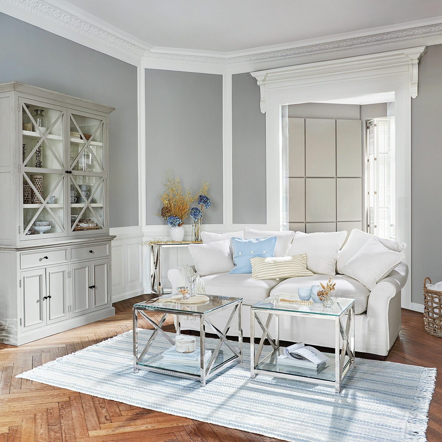 Nichts prägt den Marine-Look so sehr wie die Farben des Meeres. Was also liegt näher, als für das Küsten-Feeling zu Hause, neben typischen Deko-Elementen, auch maritim anmutende Wohntextilien wie diesen Teppich einzusetzen. Denn durch sein effektvoll gewebtes Streifendesign in dezenten Farbabstufungen schafft er ein Wohngefühl, das an die Frische des Ozeans erinnert. In Sachen Qualität trifft er den modernen Zeitgeist: Denn das verwendete Garn wird ausschließlich aus wiederaufbereiteten PET-Flaschen gewonnen. Entdecken Sie seine vorzüglichen Eigenschaften, die ihn zu einem perfekten Allrounder für den Innen- und Außenbereich machen: So gibt er sich äußerst unempfindlich und robust, ist schmutzabweisend und schimmelresistent. Zugleich verwöhnt er mit einer weichen Haptik, die mit einem Baumwollgewebe vergleichbar ist. Verleihen Sie Ihrer Sitzgruppe auf der Terrasse mehr Gemütlichkeit oder setzen Sie in Ihrer Küche einen wohnlichen Akzent – mit diesem edlen Webteppich haben Sie alle Möglichkeiten.