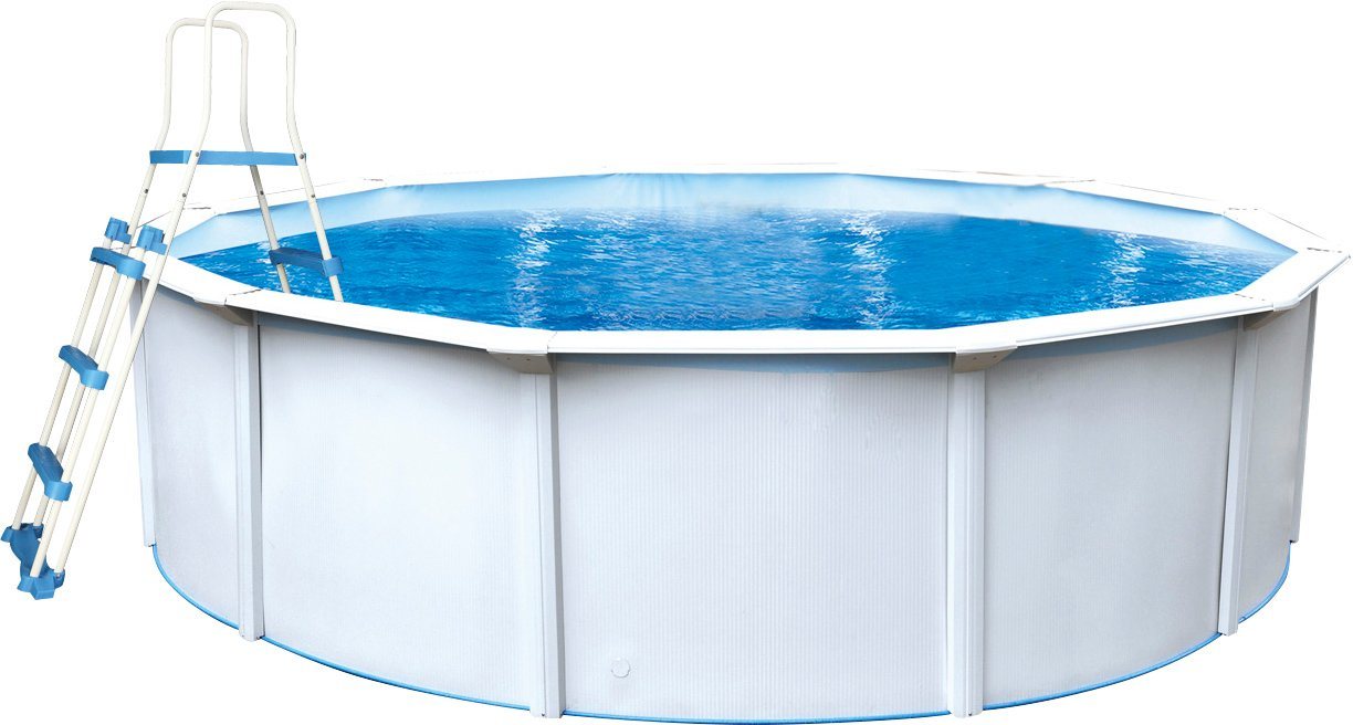 1,20 m hoch, 15 cm breiten Handlauf. Erstklassiger und hochwertiger Luxus Aufbau- und Erdeinbau-Schwimmbad mit 15 cm breitem Handlauf. Der Interline „Bonaire“ zeichnet sich aus durch seine erstklassige Qualität, seine umlaufende, feuerverzinkte und pulverbeschichtete Stahlwand, 10 cm breite und starke, stabile ertikalsteher und einen 15 cm breiten Handlauf aus Stahl. Die Innenbekleidung besteht aus einer 0,4 mm starken PVC Schwimmbadfolie. Wasserfilteranlage runden das Bild des Luxus-Schwimmbads ab.