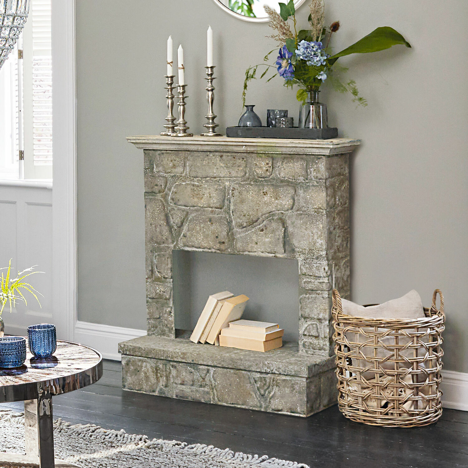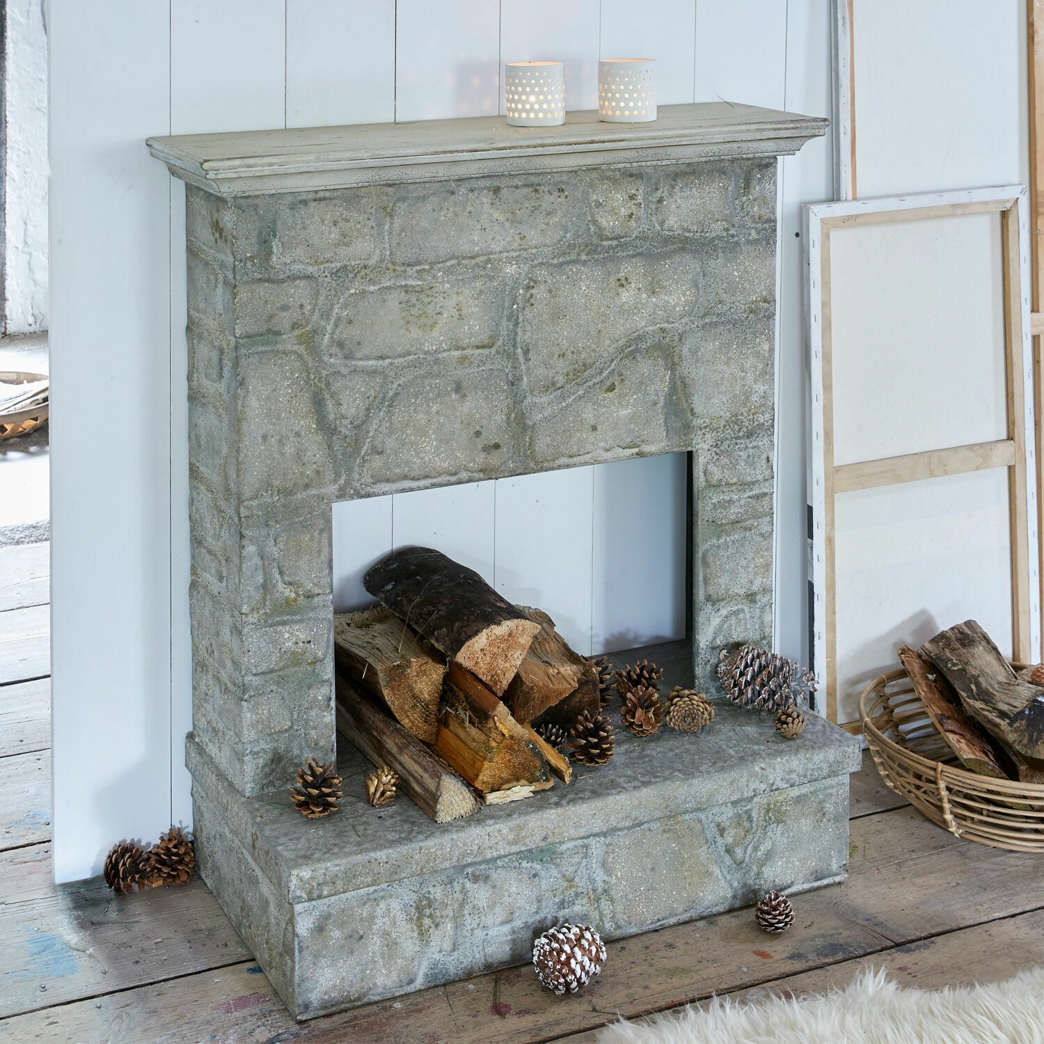 Monumental und schön zugleich: Diese Kaminkonsole lädt den Blick zum Verweilen ein, denn so Außergewöhnliches sieht man nicht alle Tage. Auch wenn sie aussieht, als wäre sie aus Stein, ist die Konsole im Kern aus massivem Eisen. Ihr aufwendiges, künstlerisches Finish verleiht ihr die ästhetische Steinoptik. Oben wird die Konsole durch eine Ablagefläche aus wiederaufbereitetem Kiefernholz abgeschlossen. Auch sie ist mit einem stilvollen Finish versehen, das durch seinen antiken Charme begeistert. Nutzen Sie die Konsole, um das einzigartige Ambiente, das nur ein Kamin entstehen lassen kann, noch stimmungsvoller zu gestalten. Vasen, Zweige, Deko-Figuren, Kerzen in edlen Ständern – hier können Sie ein echtes Kunstwerk nach Ihren Vorstellungen entstehen lassen.