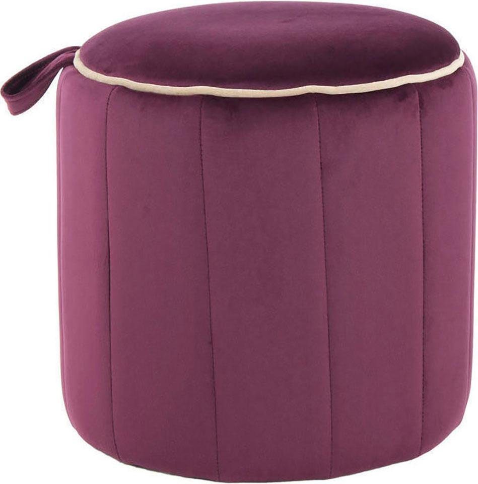 Der dekorative Hocker »Reese« aus dem Hause Kayoom beeindruckt mit einem trendigen Erscheinungsbild. Er besitzt eine zylinderförmige Gestalt, die durch vertikale Steppnähte an den Außenseiten betont ist. Sehr apart wirkt der optisch abgesetzte Rand mit einem farblich kontrastierenden Keder. Eine Griffschlaufe an der Seite unterstützt eine leichte Handhabung, mit welcher sich der Polsterhocker bewegen lässt. Seine samtweiche, textile Oberfläche verleiht dem Möbel einen bequemen Eindruck. Es lässt sich als Ergänzung der Sitzgelegenheiten im Wohn- oder Schlafzimmer sowie in anderen Räumen nutzen. Mit dem dekorativen Hocker »Reese« aus dem Hause Kayoom erhält jede Einrichtung eine stilvolle Bereicherung.