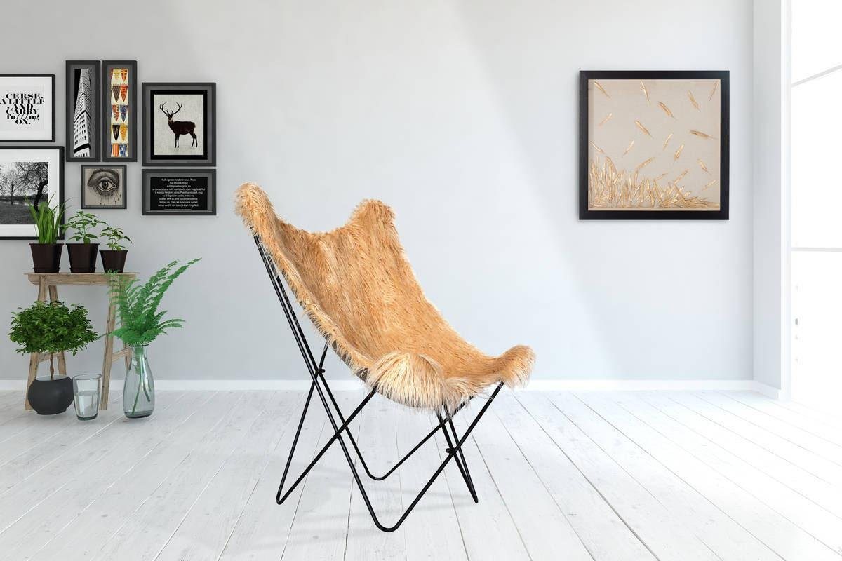 Der gemütliche Schmetterling Stuhl »Lynn« aus dem Hause Kayoom überzeugt mit einem extravaganten Erscheinungsbild. Seine Sitzfläche ist mit einem weichen Bezug aus flauschigem Kunstfell bezogen, das ihm einen komfortablen und rustikalen Look verleiht. Dazu bildet das filigrane Untergestell einen aparten Kontrast, welcher modern wirkt. Das Kunstfell besteht aus Textilien. Für die Anfertigung des Gestells verwendet der Hersteller Metall. Stühle dieser Art eignen sich optimal für die Gestaltung einer Leseecke, eines Entspannungsraumes oder als Ergänzung zu einer Polsterecke im Wohnzimmer. Mit dem gemütlichen Schmetterling Stuhl »Lynn« aus dem Hause Kayoom erhält jede Einrichtung einen interessanten Blickfang.