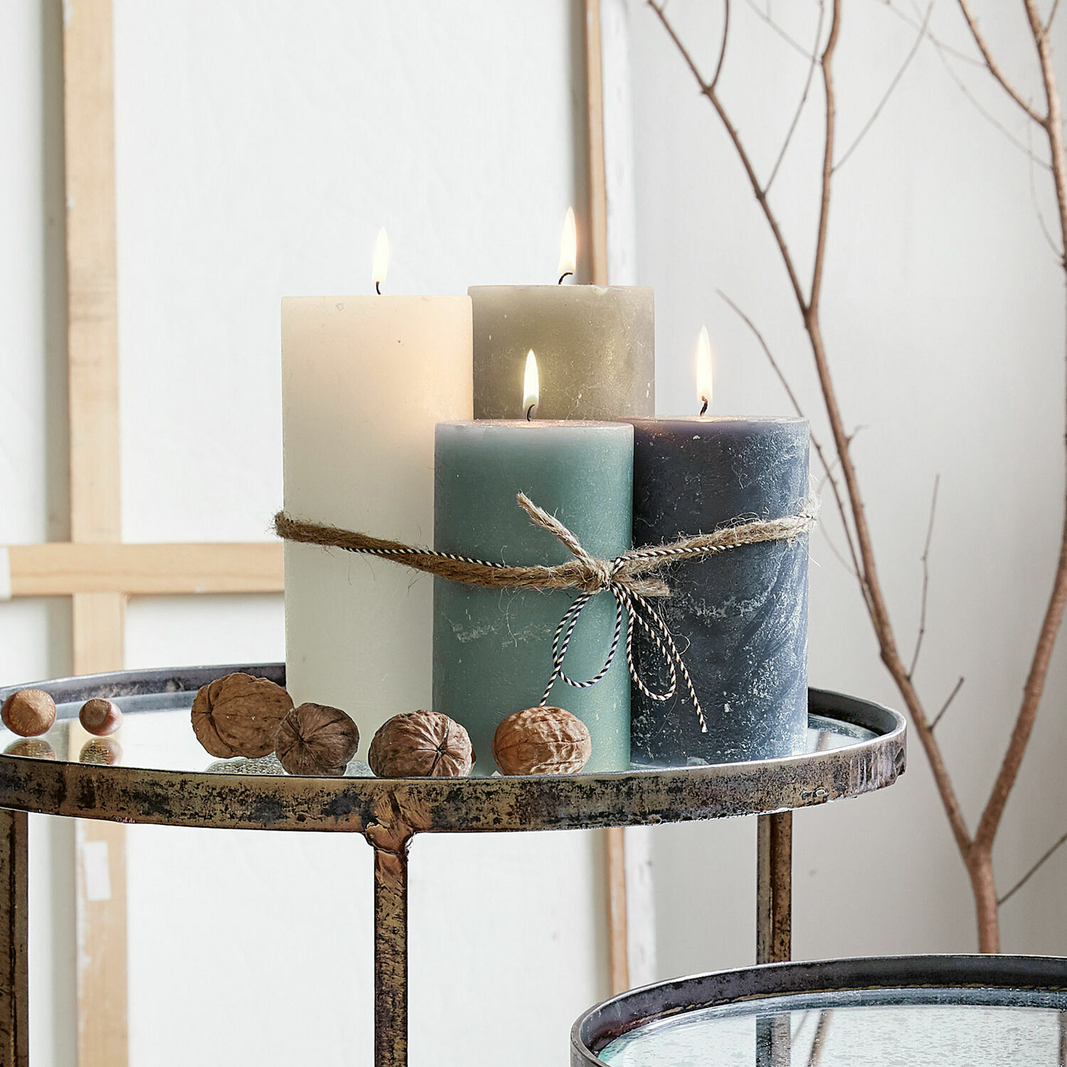 Edle Kerzen mit dem besonderen Etwas – freuen Sie sich auf ein stilsicheres Quartett, das in elegante Nuancen getaucht ist. So schmeicheln die schicken Kerzen aus durchgefärbtem Wachs jedem Ambiente und sind ein Deko-Akzent mit Charme. Sie könnten sie auf einem kreativ arrangierten Adventskranz platzieren, in hübschen Laternen aufstellen oder auf einem ansprechenden Tablett dekorieren. Hier sind der Kreativität keine Grenzen gesetzt. Freuen Sie sich auf kuscheliges Licht zu Hause und machen Sie es sich an kalten Tagen bei einem Glas Punsch und warmem Kerzenlicht so richtig gemütlich. Wer möchte, könnte die feinen Designs auch mit Kerzen-Pins schmücken.