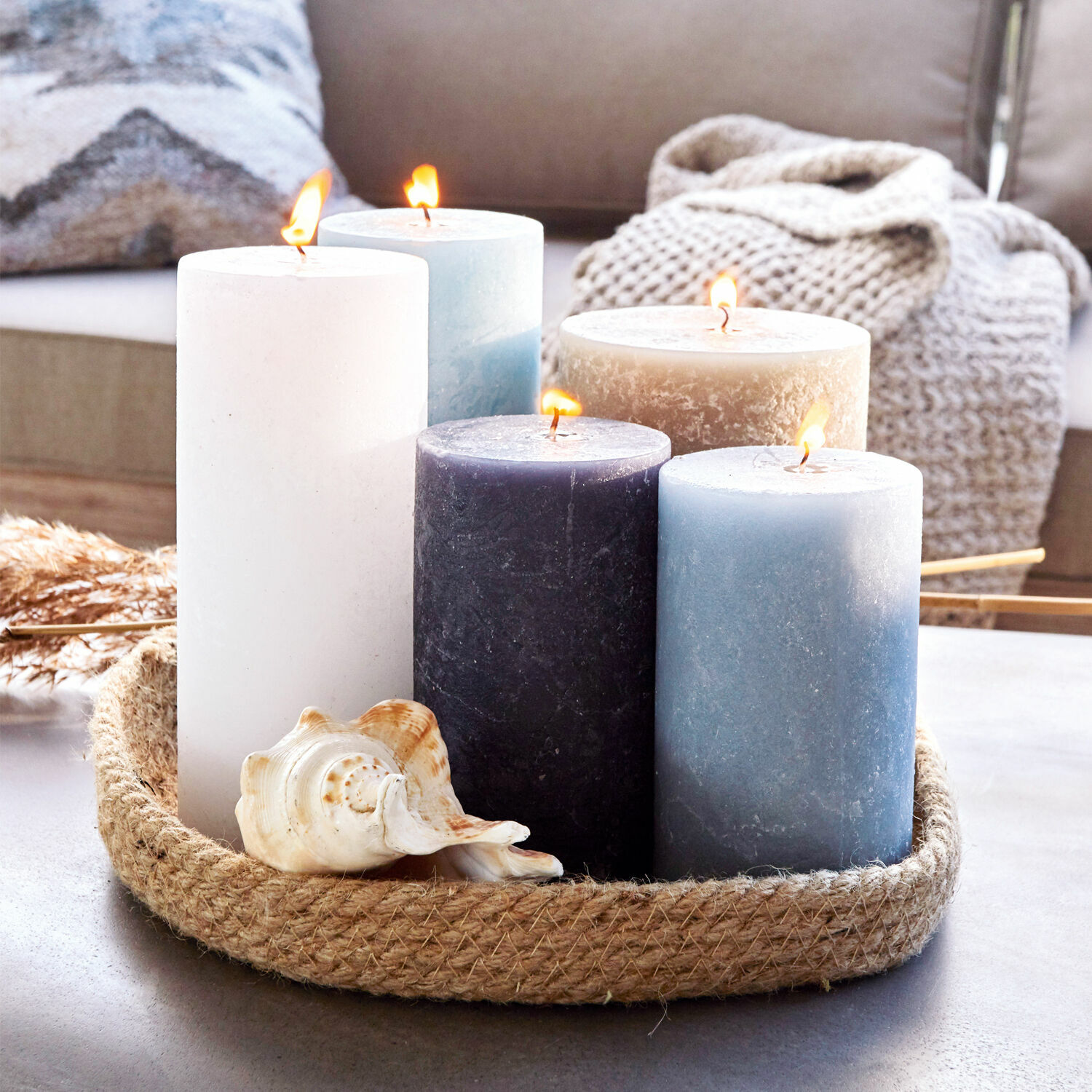 Pure Eleganz und heimeliger Kerzenschein kommen mit diesem stilvollen Set zu Ihnen nach Hause. Das geschmackvolle Ensemble aus fünf Kerzen bezaubert mit edel eingefärbtem Wachs. Eine feine Struktur und ein mattes Finish zieren ihre Oberfläche. Das Set ist perfekt aufeinander abgestimmt, und Sie erhalten verschiedene Größen und Töne im harmonischen Mix. Die Kerzen sind nicht beduftet. In hübschen Windlichtern oder vielleicht als Grüppchen auf einem Tablett arrangiert entfalten die Kerzen ihren Zauber und tauchen Ihr Heim in romantisches Licht. Beim Lesen am Abend, zum Sonntagsfrühstück oder bei einem Schaumbad wird es hiermit richtig gemütlich zu Hause, und das zu jeder Jahreszeit. Zudem entsteht ein dezenter und schmückender Akzent, welcher viele Wohnstile adelt.