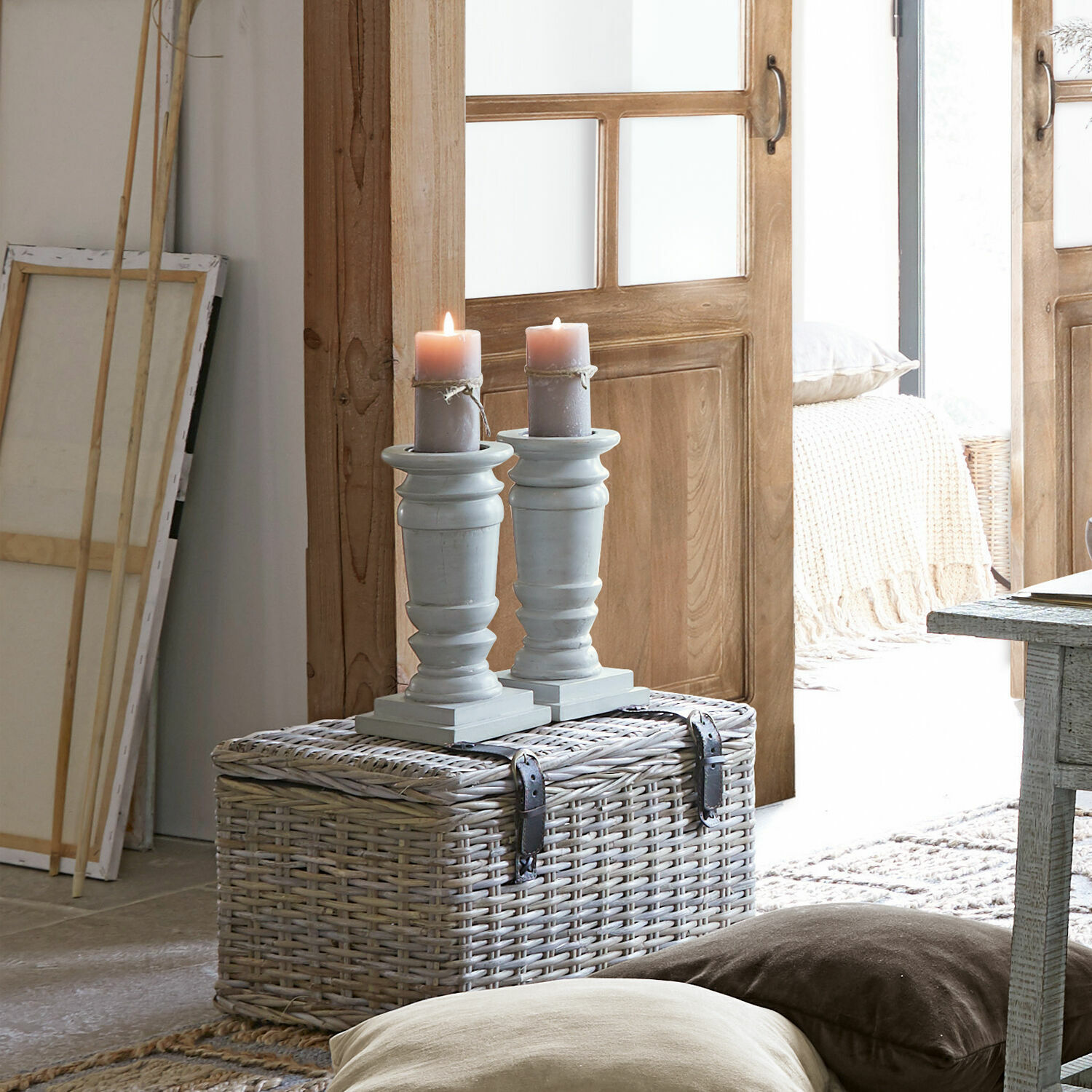 Sie möchten angenehmes Kerzenlicht und einen stilvollen, zeitlosen Akzent in Ihr Heim zaubern? Dann ist dieses elegante Duo genau richtig für Sie. Die beiden edlen Kerzenständer bestehen aus wertvollem Mangoholz und sind handgefertigt. Ein reizvolles White-Washed-Finish ziert sie und verstärkt die Patina des Designs. Auf dem Kerzenteller aus Eisen lassen sich Stumpenkerzen stabil abstellen. Das schicke Duo macht eine sehr gute Figur zum Shabby-Chic und adelt jedes Ambiente. Zum Sonntagsfrühstück, beim abendlichen Film oder zum Dinner ist warmes Kerzenlicht in jeder Saison eine hervorragende Wahl, die Ihr Zuhause so richtig gemütlich macht.