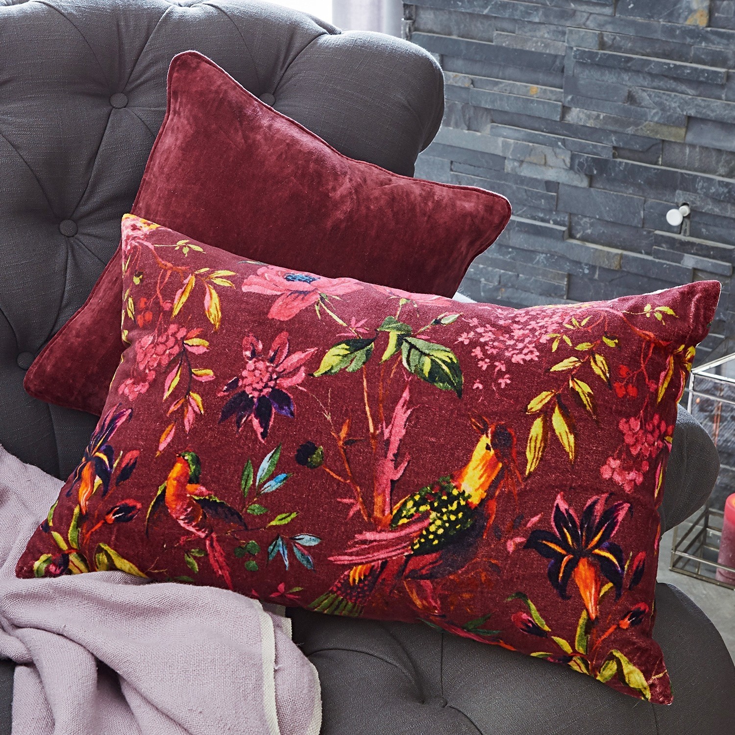 Tropisches Flair für Ihr Zuhause – der hochwertige und detailreiche Druck mit Dschungelelementen und exotischen Vögeln zaubert eine exotische Stimmung in jedes Ambiente. Zwei Kissen sind im Set enthalten. Das größere Kissen ziert der schöne Tropicana-Print. Das kleinere Modell harmoniert wunderbar in Uni-Optik mit zierender Paspel dazu. Die Bezüge der beiden Kissen sind aus hochwertigem Baumwollsamt gewebt – herrlich weich und kuschelig. Genießen Sie entspannte Momente auf dem Sofa oder im Bett und freuen sie sich über diesen stimmungsvollen Akzent, der gute Laune verbreitet.