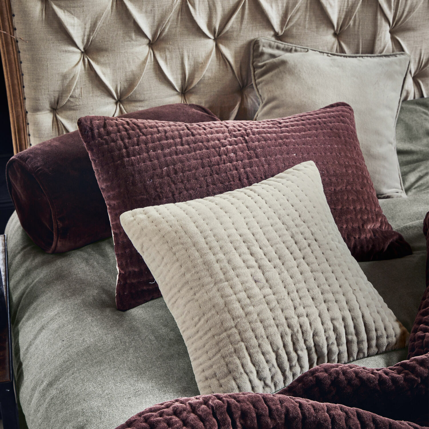 Kissen können ihren Einrichtungsstil perfekt unterstreichen und viel Wohnlichkeit in Ihr Zuhause bringen. Besonders spannend wird es, wenn unterschiedliche Formen, Strukturen und Farben aufeinandertreffen. Ganz so wie bei diesem edlen Quartett – jedes Kissen zeigt sich ganz individuell und trotzdem harmonieren sie zusammen wunderbar. Neben zwei unterschiedlich großen Kissen aus Baumwollsamt mit besonderer Struktur und Bindebändern gehört auch ein schlichtes Samtkissen mit Reißverschluss und ein weiteres rundes Samtkissen mit Reißverschluss zum Set. Alle Bezüge sind ausgesprochen weich in der Haptik und strahlen durch den feinen Schimmer des Materials eine elegante Noblesse aus. Zudem lassen sich die Hüllen von ihren weichen Füllkissen abziehen und in der Maschine waschen. Nun ist Ihre Kreativität gefragt: Gemeinsam oder als Solisten bieten sie unzählige Deko-Möglichkeiten – und machen Ihre Couchlandschaft oder das Bett zu behaglichen Wohlfühloasen.
