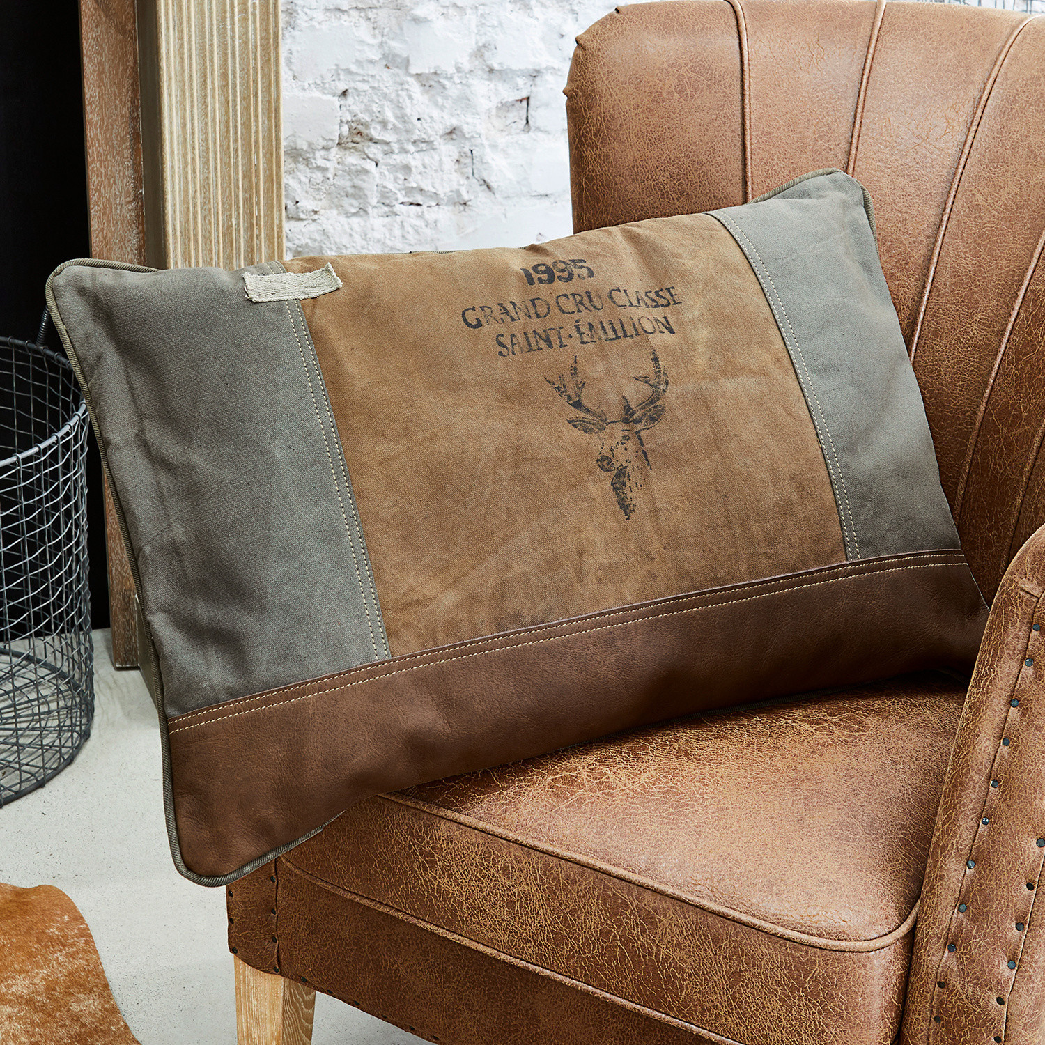 Holen Sie sich rustikales Country-Flair nach Hause und genießen Sie mit diesem hochwertigen Kissen naturnahen Charme. Das edle Modell besteht aus Baumwoll-Canvas und Büffelleder. Ein hübscher Hirsch-Print und Ziernähte verleihen ihm seinen besonderen Charakter. Setzen Sie einen geschmackvollen, optischen Akzent und holen Sie sich eine Extraportion Gemütlichkeit in Ihre Räume.