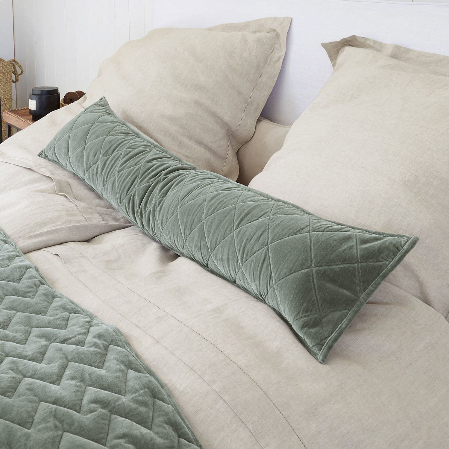 Klein, groß, ausdrucksstark oder dezent – es gibt viele Arten von Kissen, die nicht nur mit ihrem individuellen Aussehen begeistern, sondern auch mit ihrer Gemütlichkeit. Doch mit diesem Kissen in einer eher außergewöhnlichen Größe können Sie selbst noch Ihre Gäste überraschen. Es hat echte Komfortqualitäten und zeigt dabei ganz viel Stil. Dafür sorgt in erster Linie nicht nur der sanfte Naturton, sondern auch das edle Materialspiel. Die Vorderseite besticht mit weichem Baumwollsamt, der durch eine lebendige Rautensteppung dekorativ veredelt wird. Die Rückseite kontrastiert in hochwertiger Leinenqualität. Wenden Sie das Modell, wie es Ihnen gefällt – es sieht von beiden Seiten fantastisch aus. Eine Füllung aus Polyester-Fasern polstert das Kissen angenehm weich aus. Ein wunderbares Wohntextil, das zum Anlehnen, Einkuscheln und Wohlfühlen einlädt. Mit seinem länglichen Format setzt es auf dem Sofa oder Bett einen äußerst dekorativen Akzent und macht jedes kleine Kissen überflüssig. Mit dem passenden Quilt Nr. 19674 lässt sich das Zierkissen perfekt ergänzen.