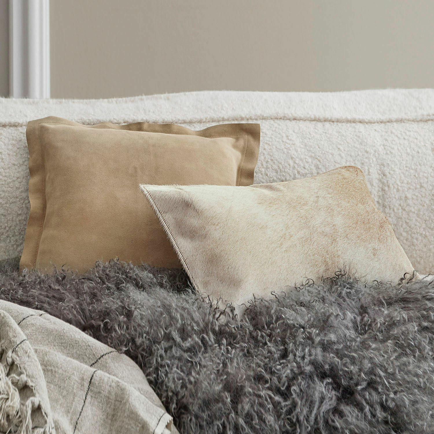 Wohnaccessoires aus echtem Leder sind wieder zu modernen Trendsettern aufgestiegen. Sie verleihen Ihrem Ambiente nicht nur eine exklusive Note, sondern auch eine gute Portion Extravaganz. Dieses Kissenhüllen-Set sorgt darüber hinaus durch ein spannendes Spiel mit Texturen für Aufmerksamkeit. Während ein Bezug mit weichem Rindsleder besticht, kontrastiert der andere Bezug mit samtig weichem Veloursleder. Die kleinen Farbunterschiede werden gerne verziehen, denn sie sind typisch für das Naturmaterial – und jedes Stück erhält einen unvergleichlichen Unikat-Charakter. Ein praktischer Reißverschluss rundet die Kissenhüllen ab. In moderne Einrichtungskonzepte wie den alpinen Chalet-Stil oder Industrial-Look fügen sich die gemütlichen Luxusstücke perfekt ein – auf der Couch oder dem Sessel aus derselben Farbfamilie kommen sie besonders schön zur Geltung.
