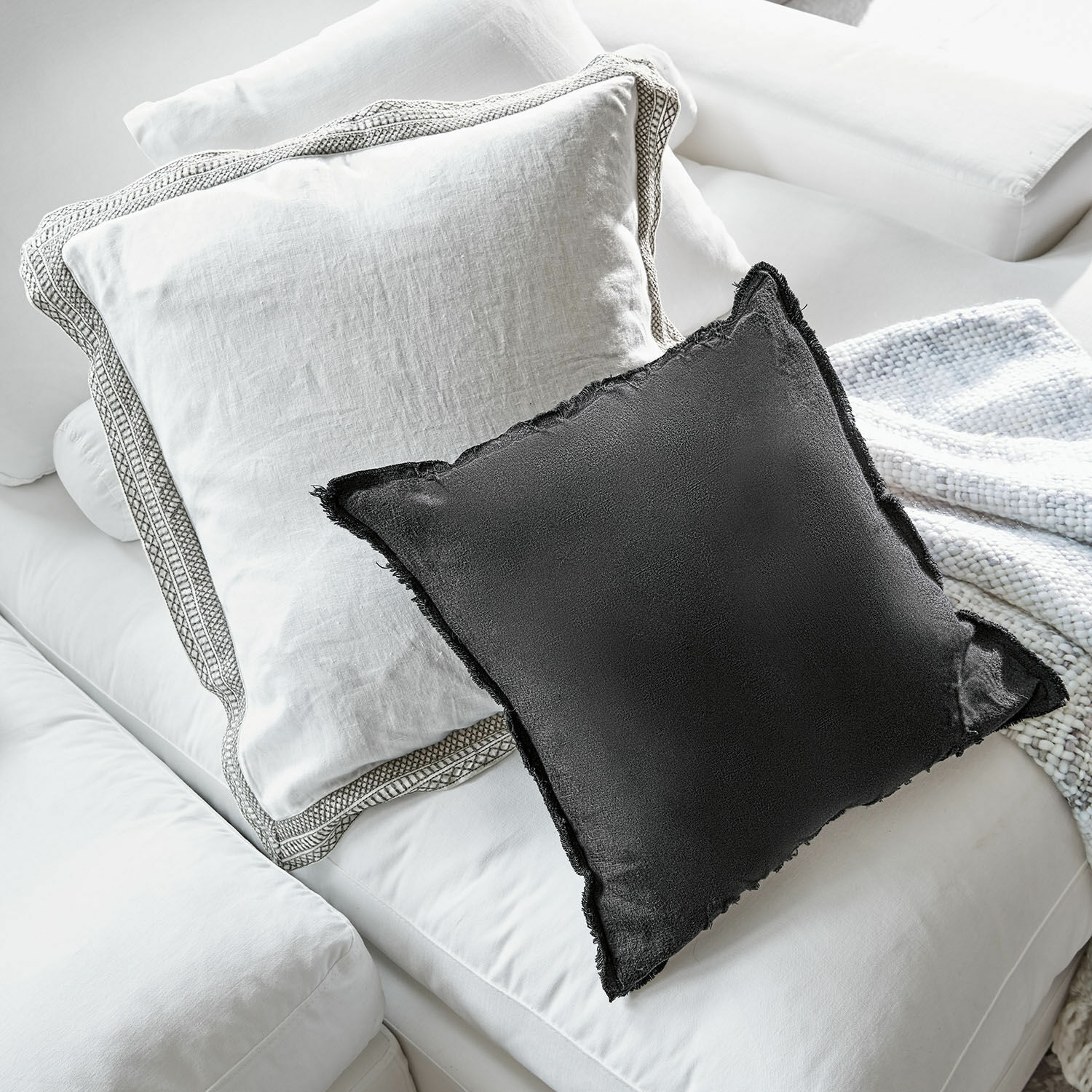 Mit maritim anmutenden Accessoires bringen Sie das frische Küsten-Flair auch in Ihr Zuhause. Und das gelingt Ihnen mit diesem modern interpretierten Kissenhüllen-Set auf besonders elegante Weise. Puristisch im Look zeigt sich der eine Kissenbezug mit feinem Fransensaum und praktischem Reißverschluss. Der andere Bezug bildet einen reizvollen Kontrast und ist mit breitem, aufwendig bestickten Stegrand und stilvollem Verschluss mit echten Perlmuttknöpfen ausgestattet. Eine traumhafte Kombination auf natürlichem Niveau: Das hochwertige Leinengewebe ist charaktervoll in seiner Struktur, dennoch verhält es sich außerordentlich glatt und anschmiegsam. Und seine hohe Strapazierfähigkeit macht die Zierkissen wunderbar alltagstauglich. Zwei kombifreundliche Wohnaccessoires, die einzeln oder als Duo viel Wirkung versprechen – und auf Ihrer Couch im Wohnzimmer oder Bank auf der Terrasse zu gemütlichen Mußestunden einladen.