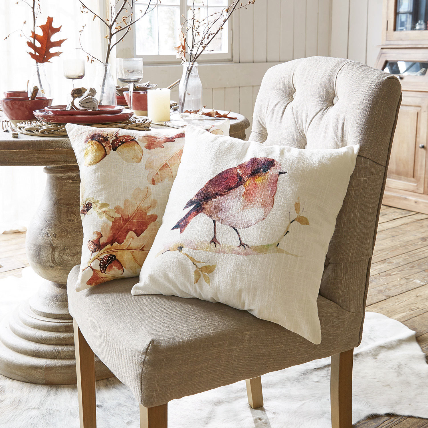 Wenn die Tage wieder kürzer werden und die Natur in einem warmen Licht erstrahlt, dann hält der Herbst Einzug. Mit diesem Kissenhüllen-Set holen Sie sich den einzigartigen Zauber dieser Jahreszeit direkt in Ihr Zuhause. In zwei unterschiedlichen Designs präsentieren sie sich in einem wunderschönen Aquarellprint, der mit faszinierender Leichtigkeit und zarter Farbgebung besticht. Die hochwertige Baumwollqualität ist angenehm weich in der Haptik und macht die Hüllen absolut alltagstauglich. Durch einen praktischen Reißverschluss auf der Rückseite lassen sie sich schnell vom Füllkissen abziehen und in der Maschine waschen. Zusammen harmonieren die Bezüge perfekt und beeindrucken auf der gemütlichen Couch oder auf der einladenden Holzbank vor dem Haus als wahre Muntermacher. Doch auch als Solisten sind sie ein optisches Highlight und lassen sich mit vielen anderen Kissen wunderbar kombinieren.