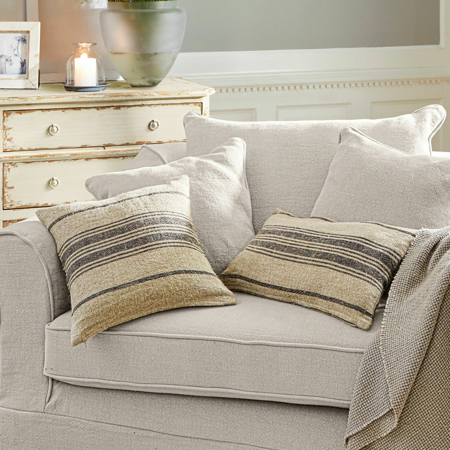 Streifen besitzen eine zeitlose Anziehungskraft. Das macht sich auch dieses edle Kissenhüllen-Set zunutze, das mit einem lebendig strukturierten Leinengewebe dem Streifen-Design eine edle Natürlichkeit verleiht. Dazu kommt die kontraststarke und doch harmonische Farbkombination, die das Bild noch reizvoller macht. Die Bezüge fühlen sich weich an und sind durch ihre hohe Strapazierfähigkeit ideal für den Alltag. Außerdem sind sie mit einem praktischen Reißverschluss ausgestattet, der das Beziehen auf das Füllkissen besonders leicht von der Hand gehen lässt. In zwei stimmig abgestuften Größen bilden die Textilien ein perfektes Duo, das in jedem Interieur wohnliche Akzente setzt – und schon werden die Couch oder das Bett zum gemütlichsten Lieblingsplatz in Ihrem Zuhause.