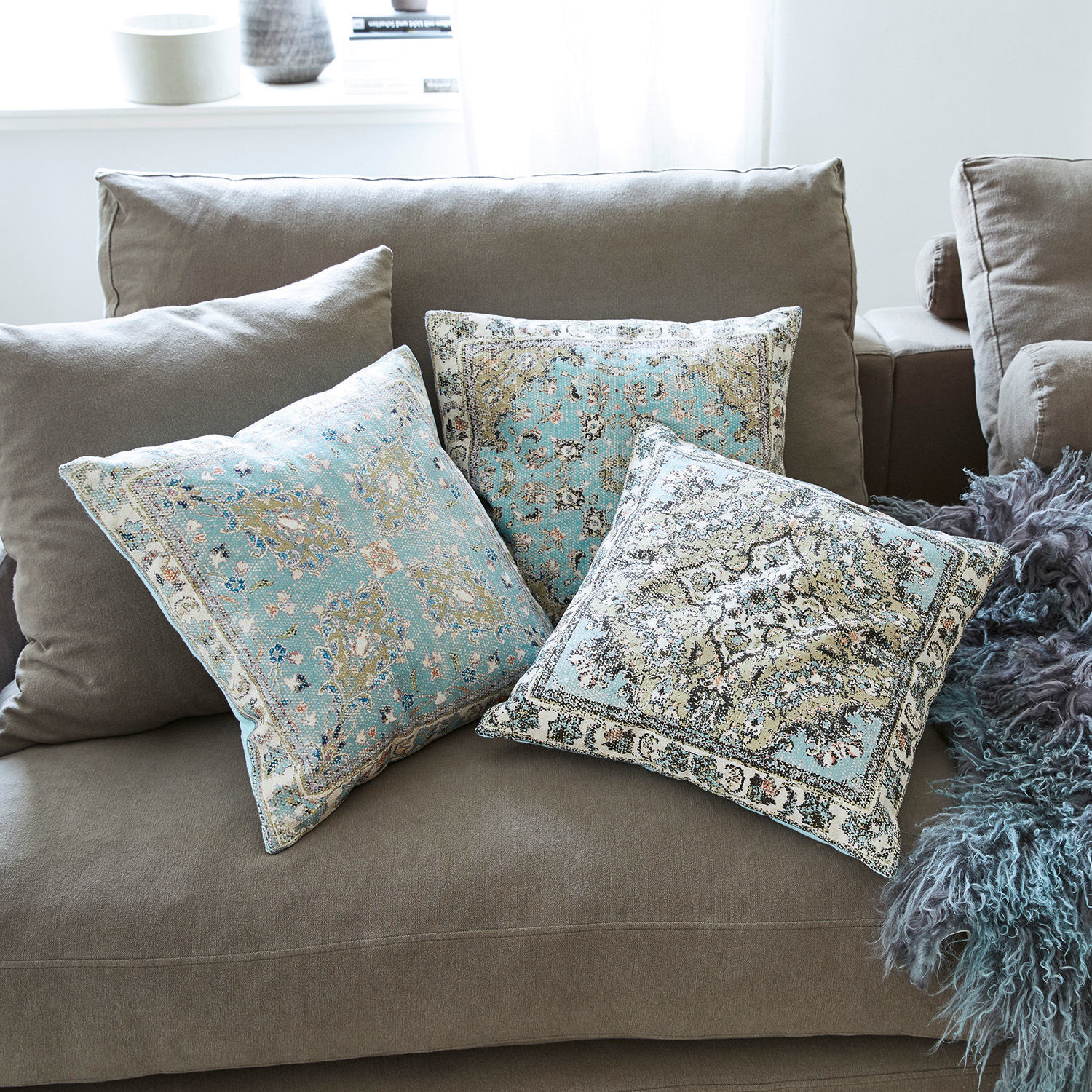 Royales Flair verströmt das Set, bestehend aus drei hochwertigen Kissenhüllen. Diese sind aus feiner Baumwolle gewebt und mit zauberhaften Persermustern bedruckt, die sich an antiken Originalen orientieren. Jede Hülle präsentiert ein unterschiedliches Muster, die Rückseiten sind jeweils einfarbig gehalten und mit einem verdeckten Reißverschluss ausgestattet.