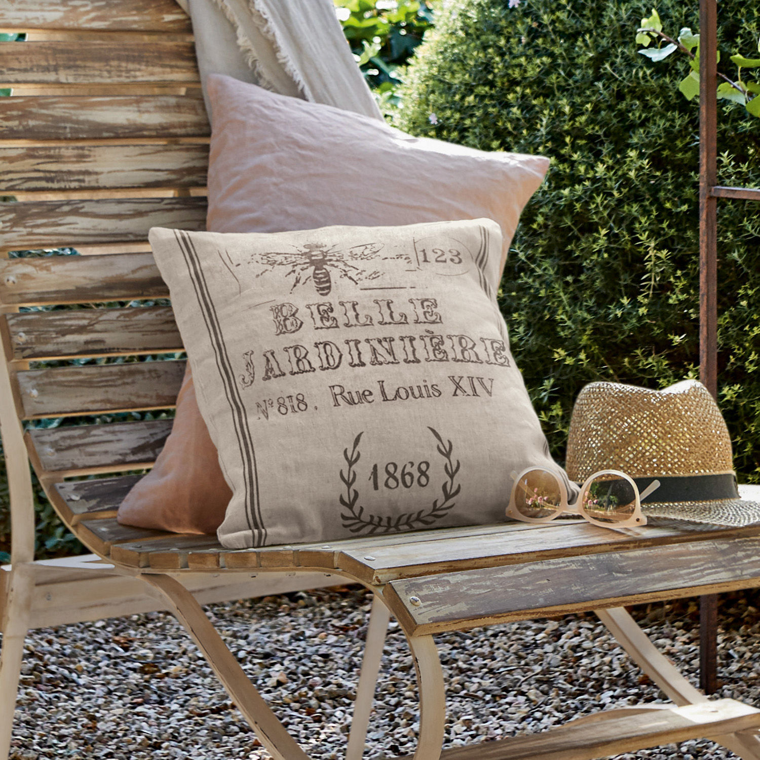 Kissen haben sich mittlerweile vom einstigen kuscheligen Gebrauchsgegenstand zum stilvollen Accessoire entwickelt. Nicht ohne Grund, denn dekorative Kissenhüllen werten so manches Möbelstück auf schönste Weise auf. So auch diese Kissenhülle im typischen Naturton. Der Bezug ist aus reinem Leinen und besticht durch den auffälligen Schriftendruck. Dieser weist auf die Biene, das Wappentier der Bonapartes, hin und unterstreicht somit den nostalgischen Charme des fantasievollen Druck-Motivs auf der Vorderseite der Kissenhülle. Diese ist übrigens ganz einfach mit Hilfe eines Reißverschlusses abnehmbar. Wir finden dieses Kissen besonders schön auf einem schlichten Sofa oder einem nostalgischen Sessel. Allerdings zieht es die Bienen bekanntlich in die Sonne und von daher passt auch diese Kissenhülle im Sommer auf die Terrasse und in den Outdoor-Sessel.