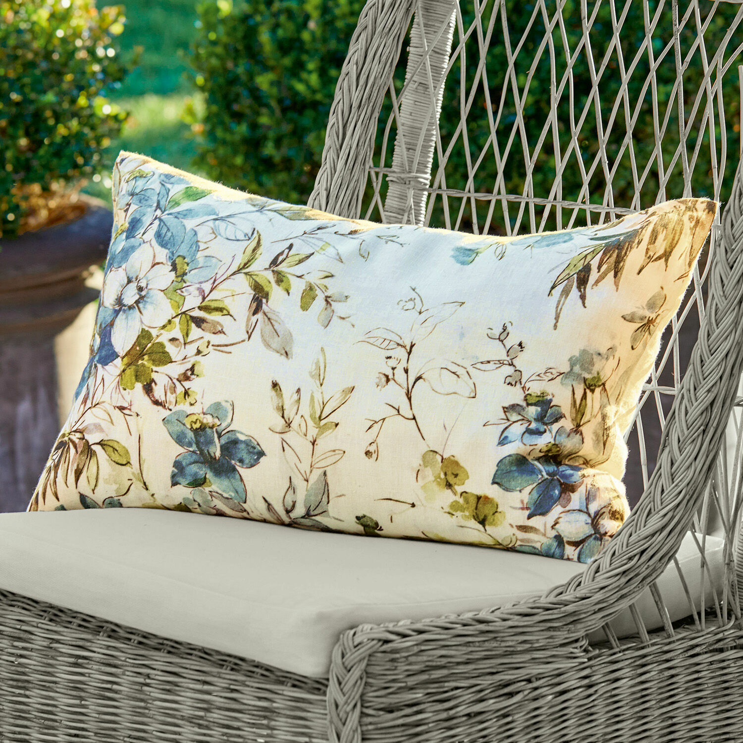 Die schönsten Blumen des Sommers lassen Wohntextilien zauberhaft erblühen. Gerade wenn sie sich so eindrucksvoll präsentieren wie diese Kissenhülle werden Sie sich in Ihre Lieblingsplätze im Wohnzimmer oder auf der Terrasse immer wieder aufs Neue verlieben. Der hochwertige Digitalprint im zarten, aber frischen Farbspektrum ist traumhaft schön, fast könnte man meinen, die Blüten wären von Hand mit einem Pinsel aufgemalt. Die Rückseite ist unifarben und mit einem Reißverschluss gestaltet, so dass das Beziehen auf das Füllkissen besonders leicht von Hand geht. In Sachen Komfort verwöhnt der Kissenbezug mit den typischen Eigenschaften reinen Leinens: Das Gewebe ist lebendig in der Struktur, fühlt sich angenehm weich an und ist strapazierfähig genug für den Alltag. Ein romantischer Stimmungsaufheller für jedes Landhaus-Ambiente.