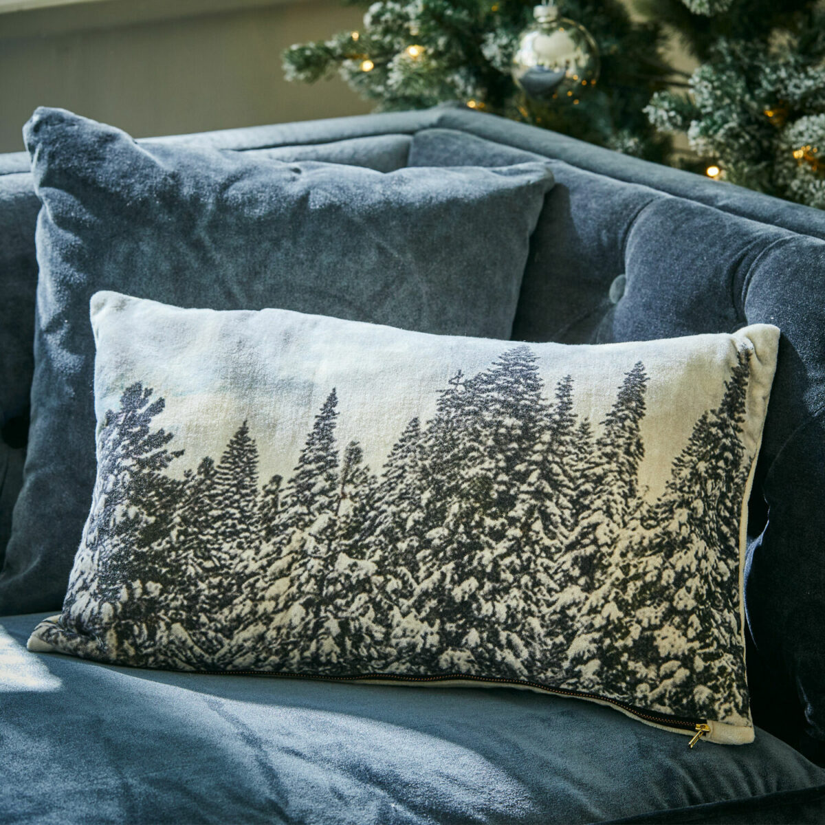 Lassen Sie sich entführen in die verzauberte Welt des Winterwaldes. Diese originelle Kissenhülle ist ein stilvoller Stimmungsmacher und schafft eine inspirierende Atmosphäre in Ihren Räumen – nicht nur zur Weihnachtszeit. Wohntextilien mit Fotodrucken sind im Trend, besonders Naturmotive. Ein traumhaft schönes Winterszenario mit Tannenbäumen steht hier im Fokus – das Ganze in einer charakteristischen Farbgebung, was dem Motiv einen ganz besonderen Nostalgie-Charme verleiht. Der fein schimmernde Baumwollsamt setzt das Bild nicht nur brillant in Szene, er verwöhnt auch mit eleganter Noblesse und fantastisch weicher Haptik. Abgerundet wird der Kissenbezug durch einen Reißverschluss, der das Beziehen leicht von der Hand gehen lässt. Ein wundervoller und gemütlicher Dekoakzent, mit dem Sie auch Ihre Gäste beeindrucken können – ob auf dem Sofa, dem Lieblingssessel oder der Kaminbank.