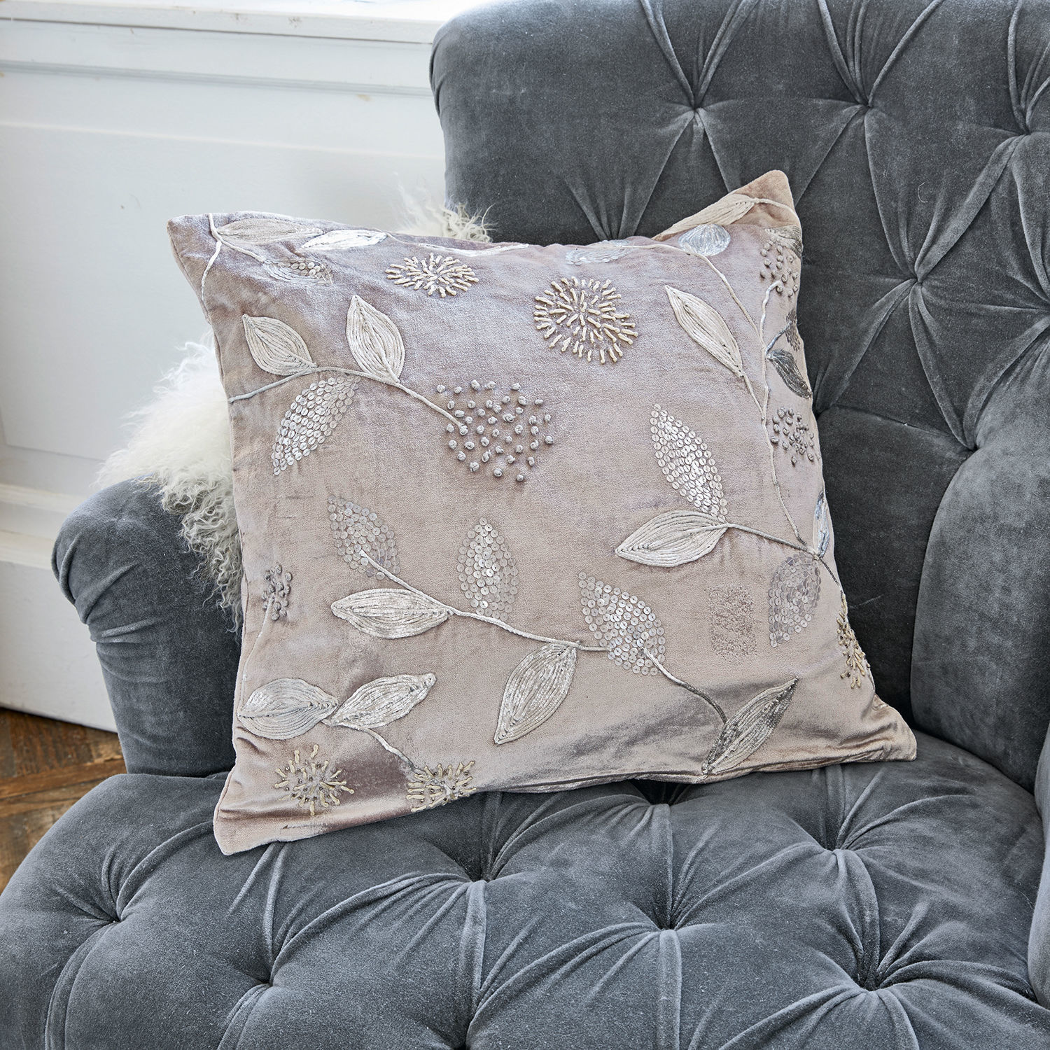 Wenn Sie eine Vorliebe für das Besondere haben, sollten Sie Accessoires wie diese außergewöhnliche Kissenhülle in Ihr Wohnambiente einbeziehen. Hochwertiger Viskosesamt und die fantastischen Details machen das Kissen zu einem Erlebnis für die Sinne. Samt war einst nur dem Hochadel vorbehalten, auch heute noch assoziieren wir mit dem fein schimmernden Material Eleganz und Glamour. Das Beste ist jedoch seine wunderbar weiche Haptik sowie seine warme und gemütliche Ausstrahlung. Die wunderschönen Blüten- und Blätterornamente sind aus Seide und wurden in kunstvoller Handarbeit aufgestickt. Zudem sorgen kleine Zierperlen und Pailletten für effektvolle Glanzlichter. Ein praktischer Reißverschluss rundet das Textil ab. Ein exklusives Schmuckstück, das in jedes Interieur passt und nicht nur auf dem Sofa oder Sessel alle Blicke auf sich zieht. Kombiniert mit Kissen aus zotteligem Fell oder grobem Strick verleihen Sie Ihrem Wohnstil noch mehr Ausdruck und Individualität.