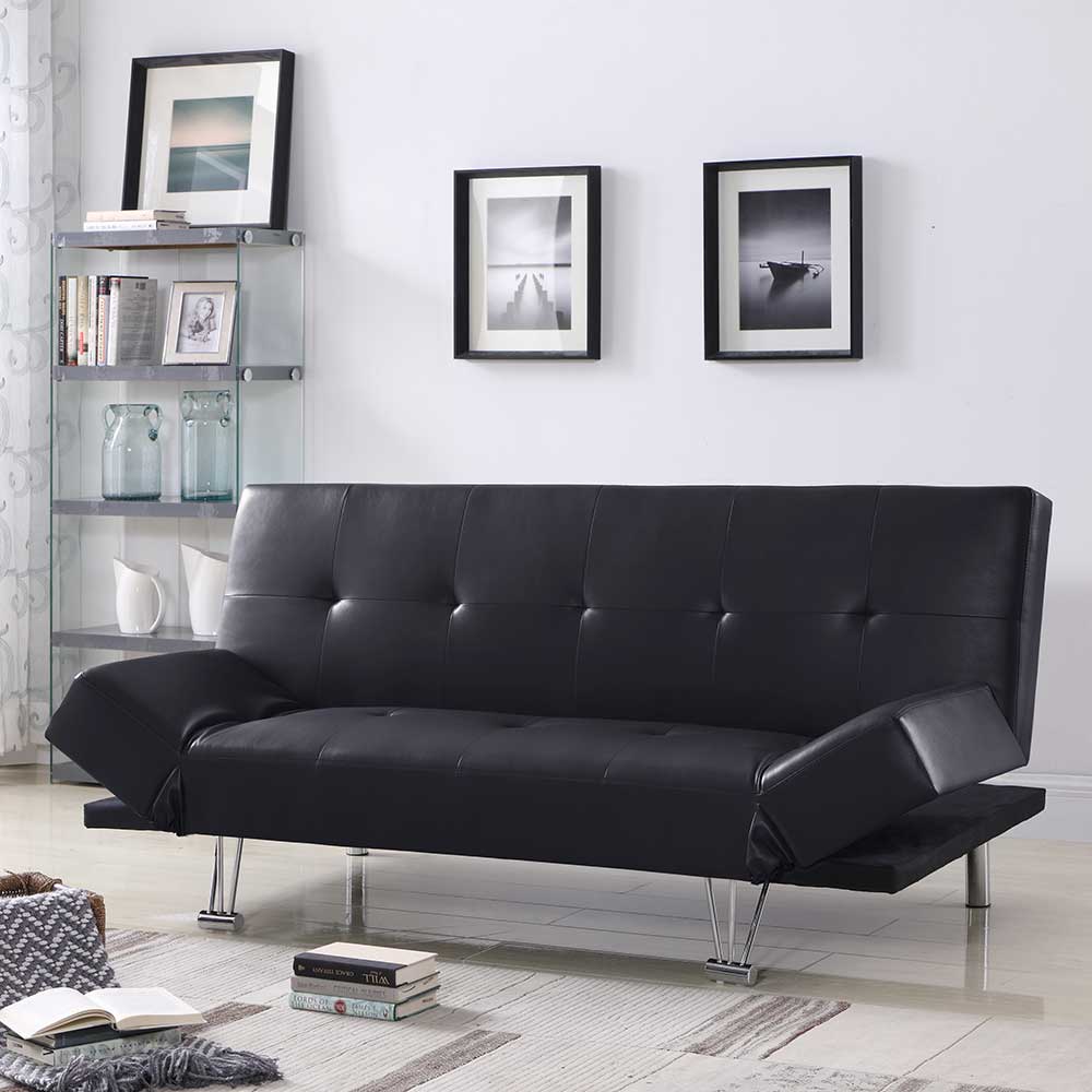 Klappcouch in Schwarz Kunstleder verstellbaren Armlehnen