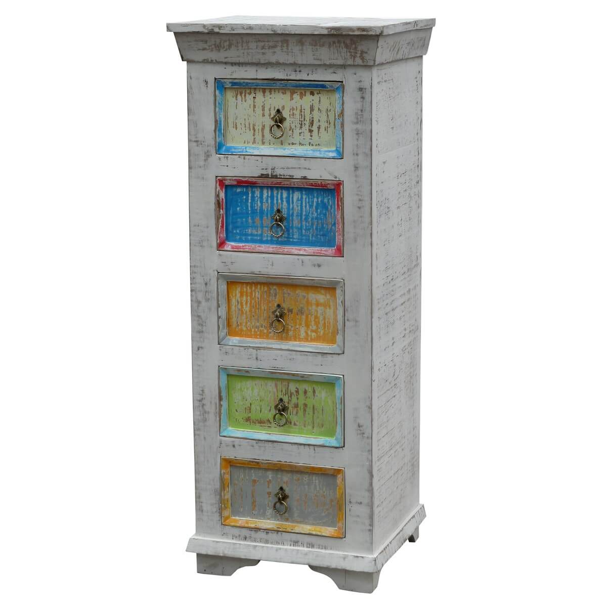 Kommode aus Massivholz Antik Weiß / Pastell
