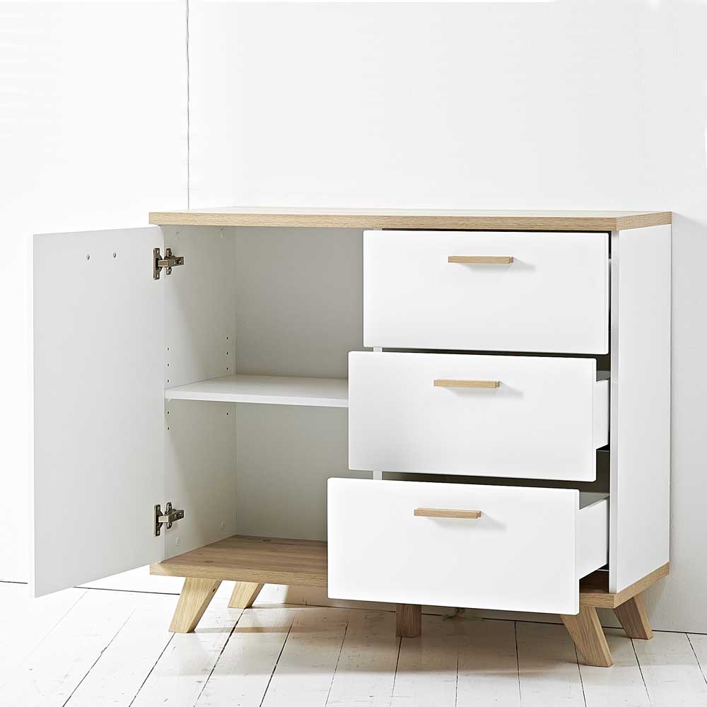 – Kommode Weiß und Eichefarben – Flurkommode Spanplatte und MDF – Küchenkommode Modern – Wohnzimmer kommode Breite: 97 – Flur kommoden Höhe: 87 – Wohnzimmerkommode Tiefe: 40 – Garderobenkommode Mit drei Schubladen und mit Selbsteinzug – Kommode für garderobe Schrank-Tür: mit Drehtüren – Eichenkommode 1-türig (mit Türdämpfung), Innenaufteilung: mit Einlegeböden – Anschlag (Scharniere) der Türen: Links (Rechtsseitig zu öffnen) – Ohne Beleuchtung – Zerlegt, zum leichten Selbstaufbau (Montageanleitung liegt bei) – Deutsche Produktion – Melaminbeschichtet – Holzgriffen – Mit stoßfesten ABS Kanten – Rechteckige FormInformationen zur Lieferung:Die Zustellung dieses Produktes erfolgt per Spedition. Sie werden vor der Auslieferung durch die ausliefernde Spedition kontaktiert.Terminvereinbarung: Sie werden frühzeitig (ein paar Tage im Voraus) durch die ausliefernde Spedition kontaktiert und Ihnen der Auslieferzeitpunkt mitgeteilt. Die Kontaktaufnahme erfolgt per Telefon. Bei telefonischer Nichterreichbarkeit werden Sie per Postkarte über das Auslieferdatum informiert.Die Lieferung erfolgt aus Kostengründen Frei Bordsteinkante (bis zur ersten verschlossenen Tür). Für den weiteren Transport der Ware sind Sie eigenverantwortlich.Die Auslieferung erfolgt von Montags bis Freitags. Eine Zustellung an Sonn- und Feiertagen ist nicht möglich.