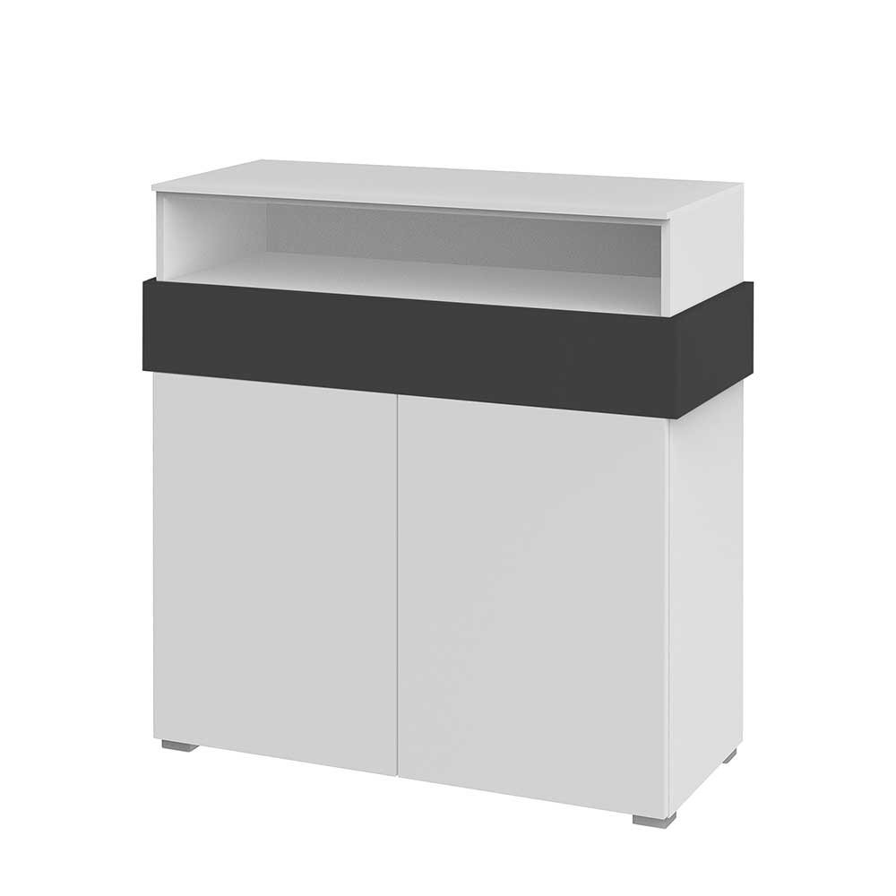 – Kommode Weiß und Anthrazit – Flurkommode Spanplatte – Küchenkommode Modern – Wohnzimmer kommode Breite: 102 – Flur kommoden Höhe: 110 – Wohnzimmerkommode Tiefe: 44 – Mit einer Schublade – Schrank-Tür: mit Drehtüren – 2-türig, Innenaufteilung: mit Einlegeböden – Ohne Beleuchtung – Zerlegt, zum leichten Selbstaufbau (Montageanleitung liegt bei) – Deutsche Produktion – Melaminbeschichtet – Mit stoßfesten ABS Kanten – Rechteckige FormInformationen zur Lieferung:Die Zustellung dieses Produktes erfolgt per Spedition. Sie werden vor der Auslieferung durch die ausliefernde Spedition kontaktiert.Terminvereinbarung: Sie werden frühzeitig (ein paar Tage im Voraus) durch die ausliefernde Spedition kontaktiert und Ihnen der Auslieferzeitpunkt mitgeteilt. Die Kontaktaufnahme erfolgt per Telefon. Bei telefonischer Nichterreichbarkeit werden Sie per Postkarte über das Auslieferdatum informiert.Die Lieferung erfolgt aus Kostengründen Frei Bordsteinkante (bis zur ersten verschlossenen Tür). Für den weiteren Transport der Ware sind Sie eigenverantwortlich.Die Auslieferung erfolgt von Montags bis Freitags. Eine Zustellung an Sonn- und Feiertagen ist nicht möglich.