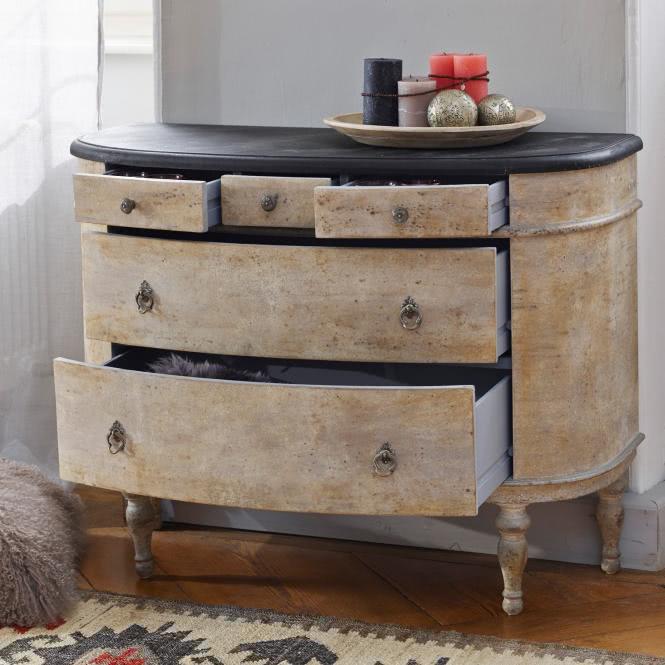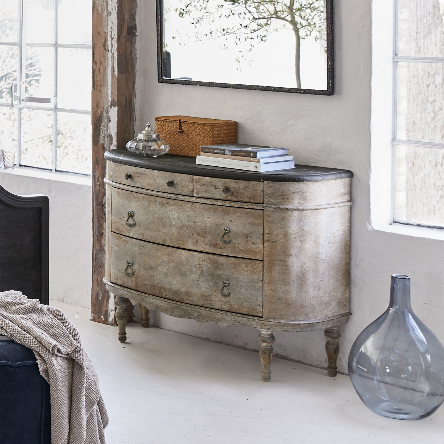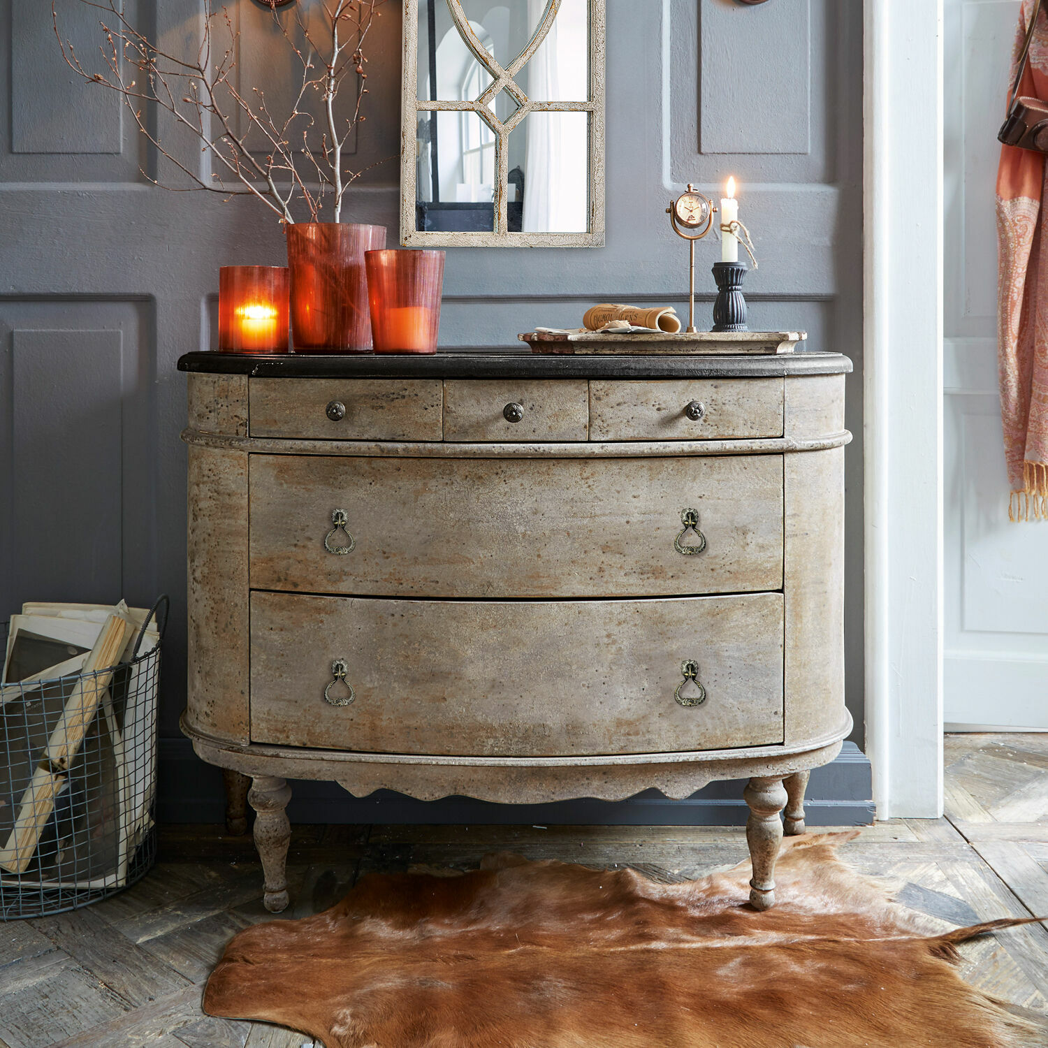 Wiederaufbereitetes Kiefernholz unterstreicht den antiken Jugendstil-Charme dieser raffinierten Kommode. Das gebogene Holz spricht für anspruchsvolles Handwerk und […]