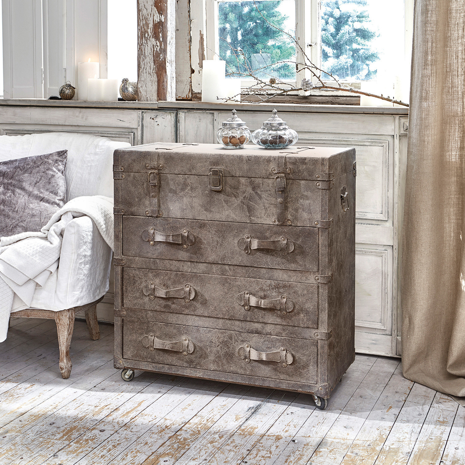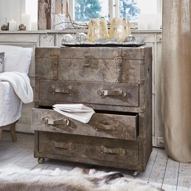 Exquisite Mischung aus Rollcontainer und Truhe mit hochwertigem Antik-Finish. Mit Stoffverkleidung im Inneren. Die obere Truhe lässt sich mit einem dekorativen […]