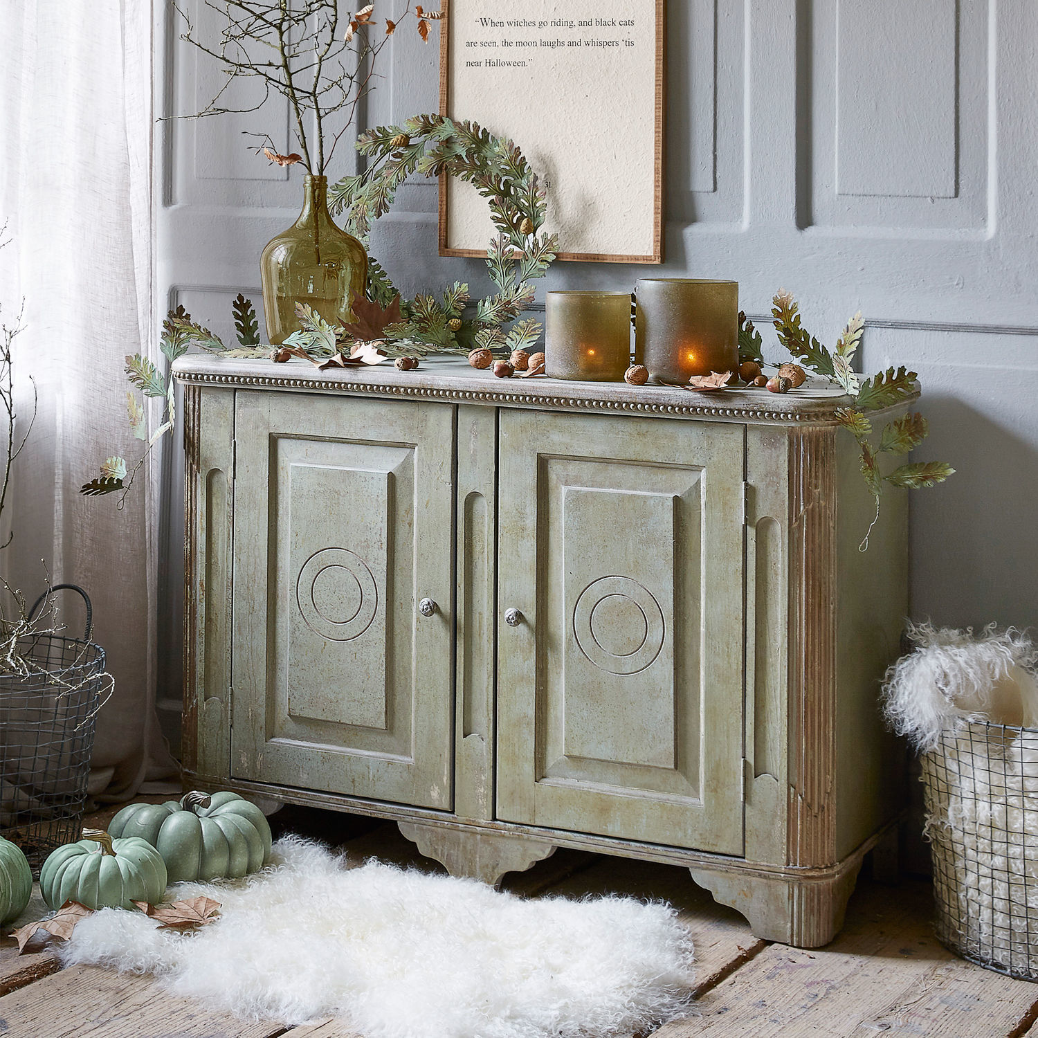 Eine faszinierende Verbindung: klassisch klare Linien vereinen sich mit filigranen Verzierungen. Ästhetische Formen und kunstvoll veredelte Elemente machen diese Kommode zu einem ganz besonderen Kunstwerk. Ein liebevolles Antik-Finish verleiht ihr einen stilvollen Shabby Chic-Look mit einer authentischen historischen Optik. Da das Finish mit großer Liebe zum Detail von Hand gefertigt wurde, ist jede Kommode buchstäblich ein Unikat. Auch die Perlenverzierung, welche die Ablage umsäumt, sowie die verzierten Kassettentüren und ästhetischen Standfüße machen diese Kommode zu einem außergewöhnlichen Schmuckstück. Zu diesem verführerischen Aussehen gesellt sich ein hohes Maß an Komfort und Funktionalität: Die Kommode ist nicht nur eine Zierde in jedem Raum, sie bietet auch einigen Platz zur Aufbewahrung – insbesondere von Wertsachen und Gegenständen, die Ihnen am Herzen liegen. Denn wo könnten sie einen stilvolleren Platz finden als in dieser kunstvollen Kommode? Eine Bereicherung für alle, die in ihr Wohnambiente den Charme der Goethezeit bringen möchten.