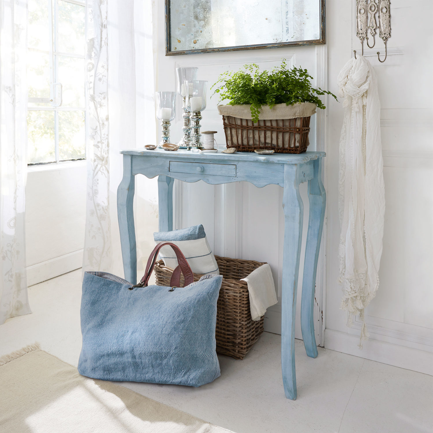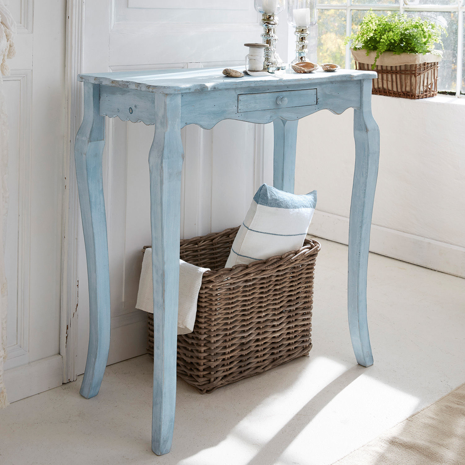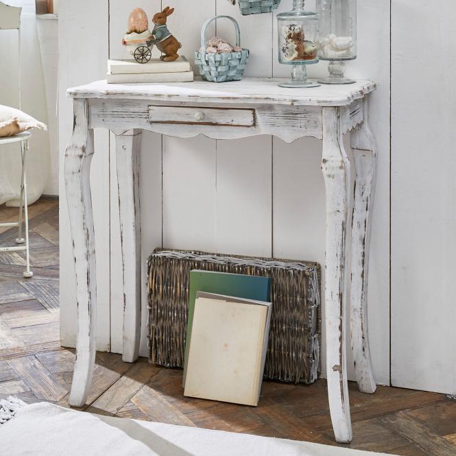 Landhaus-Konsole im französischen Stil: Aus Tannenholz mit feinem Antik-Finish. Landhaus-Konsole im französischen Stil: Komplett aus Tannenholz gefertigt und […]