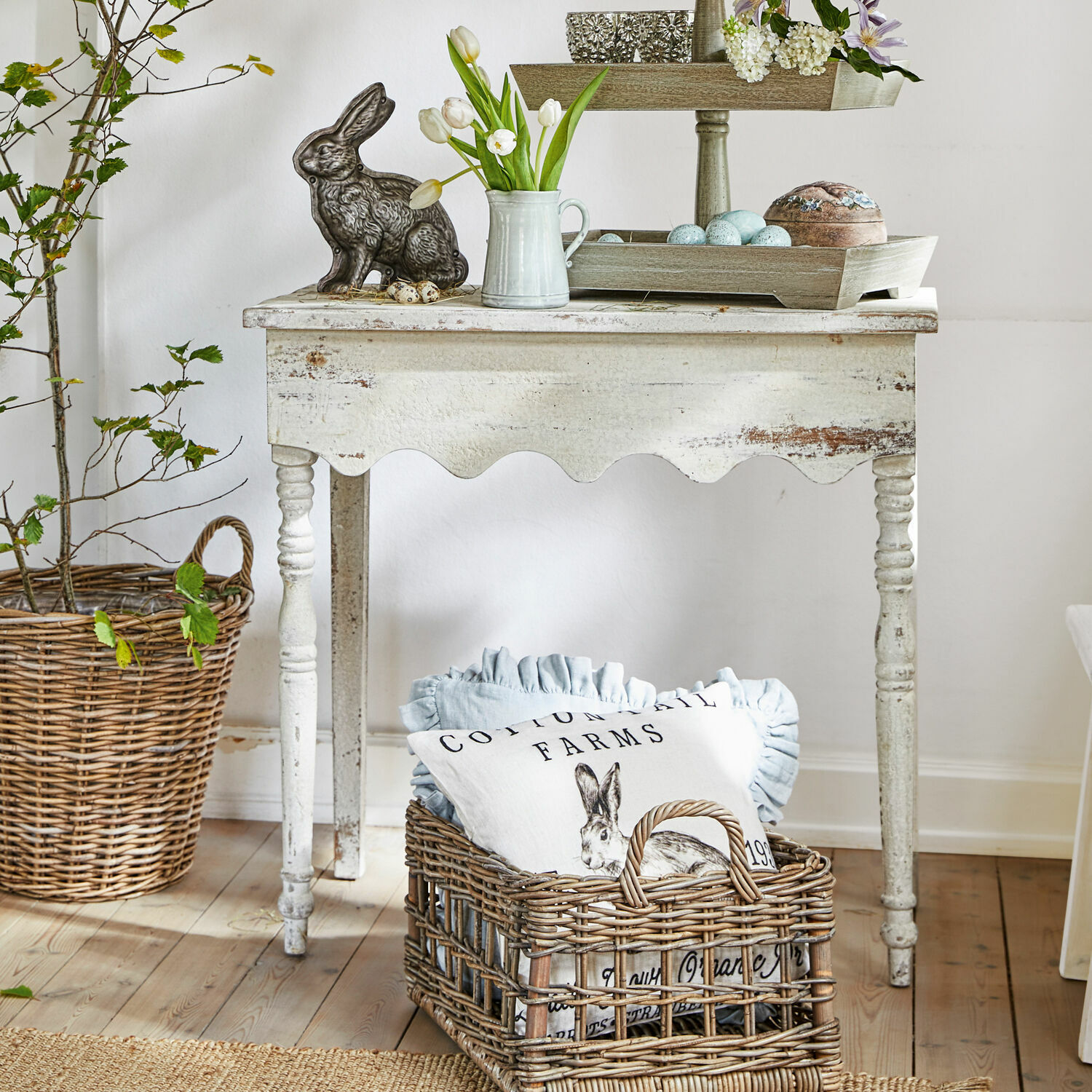 Diese Konsole versprüht den Charme eines romantischen Dachbodenfundes in einem alten Haus, der die Jahrzehnte überdauert hat. Den historischen Look verleihen dem dekorativen Stück das originelle Antik-Finish und der romantische Shabby-Chic. Die märchenhafte Detailarbeit zeigt sich in dem hochwertig gestalteten Kiefernholz. Ihr Antik-Style passt natürlich zu anderen Shabby-Chic-Möbeln, aber auch zum Landhaus-Stil und macht sich hervorragend als gezielter Stilbruch in Räumen mit klaren Formen oder schweren Möbeln. Das helle Antik-Finish fügt sich dezent ein und rundet den Look der Konsole ab. Versehen Sie die Konsole mit saisonalen Objekten oder platzieren Sie Schalen oder Kerzenleuchter auf ihr. Entfalten Sie Ihre Kreativität ganz frei!