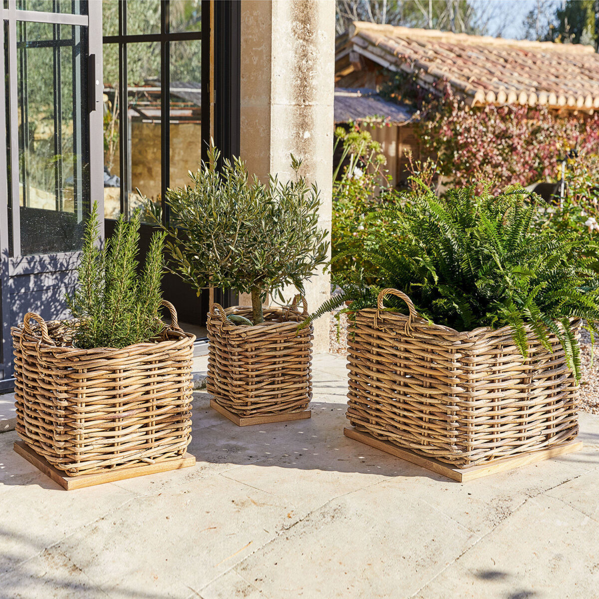Sehr funktionell und attraktiv präsentieren sich diese drei hochwertigen Körbe im Set. Das schlichte Design lässt sich nahtlos in die unterschiedlichsten Einrichtungskonzepte einfügen und sorgt in jedem Zuhause für natürliches Flair. Diese bezaubernden Körbe dienen zugleich der Aufbewahrung und der Dekoration. Durch die eckige Form wird kein Stauraum verschenkt, falls sie die Körbe beispielsweise in einem Schrank oder Regal aufbewahren möchten. Sie werden aus Rattan produziert, das aus nachhaltiger Produktion stammt und einen natürlichen Verarbeitungsprozess durchläuft. Das Rattan-Rohr wird wochenlang in Schlammbädern gelagert und ganz ohne den Einsatz von Chemie veredelt. So erhält es über die Zeit eine einzigartige Färbung, besondere Geschmeidigkeit und Flexibilität. Anschließend wird es in traditionell indinesischer Handarbeit zu Körben geflochten. Viel Sorgfalt sowie Liebe für Tradition und Handwerk fließen in die Herstellung dieser Schönheiten. Als Abschluss und für einen sicheren Stand sorgt eine hübsche Bodenplatte aus robustem Teakholz.