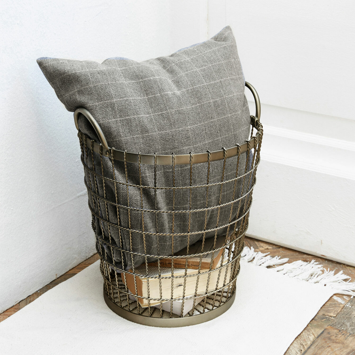 Im Märchen ist die Magd manchmal eine heimliche Prinzessin – und auch die alltäglichsten Gebrauchsgegenstände können einen aristokratischen Zauber entfalten. Dieser schmucke Korb gehört zweifellos dazu. Er ist vollständig aus stabilem Eisen. Trotz seines massiven Materials wirkt er alles anders als klobig, sondern weiß durch seine feinen Streben zu gefallen. So schön er ist, so praktisch ist er zugleich: Nutzen Sie ihn für Holzscheite an Ihrem Kamin, für Schirme an Ihrem Eingangsbereich, für Bastel- und Hobby-Accessoires oder stellen Sie einen Pflanzentopf in ihn hinein – lassen Sie Ihrer Fantasie freien Lauf. Egal, wie Sie ihn verwenden: Durch sein schlichtes, doch kunstvolles Design wird er bei jeder Aufgabe und an jedem Ort mehr als gut aussehen.