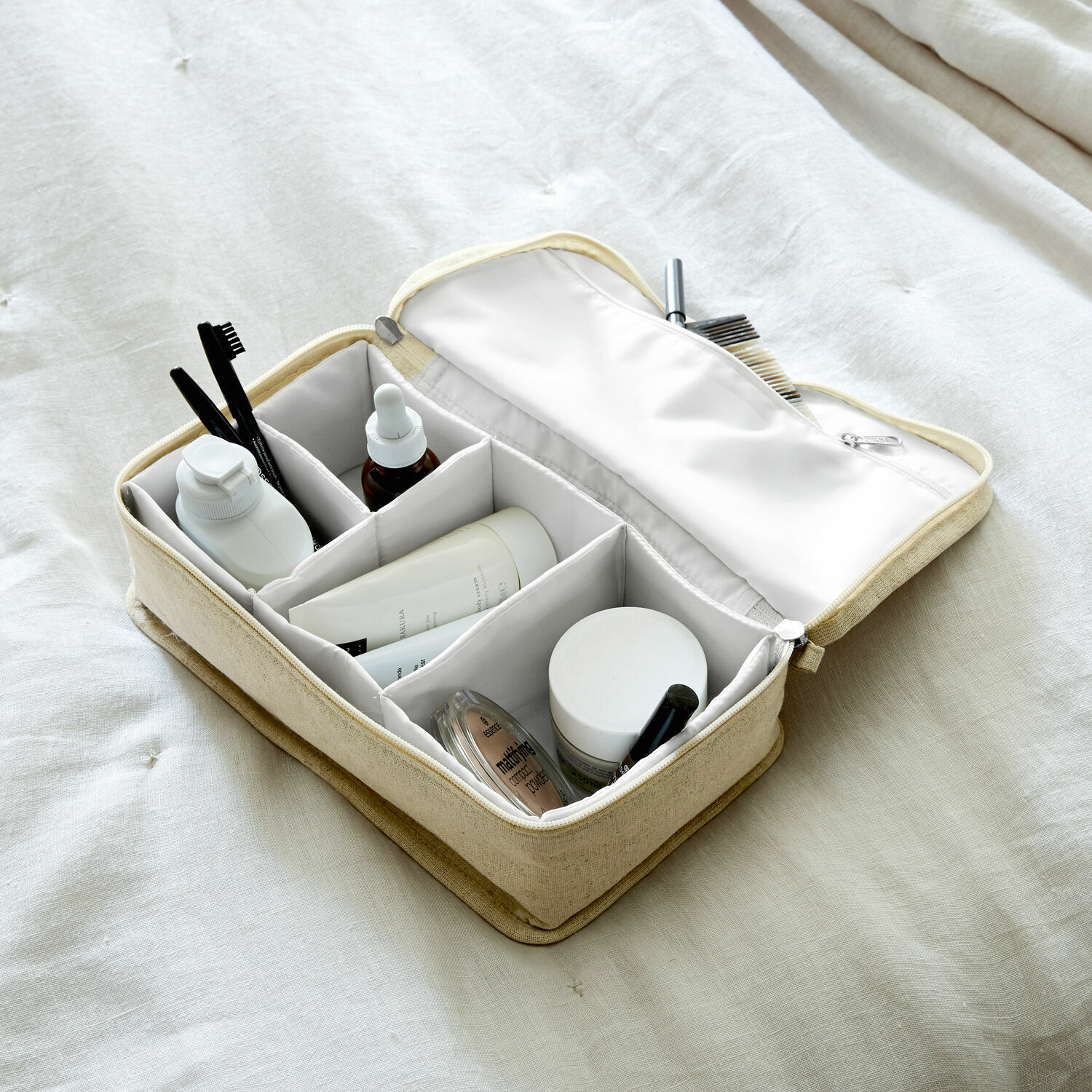 Romantik pur und ein Design, das Funktionalität und Vintage-Charme vereint – diese reizende Kosmetiktasche ist ein kleines Lieblingsstück. Sie besteht aus weicher Baumwolle und ist gefüttert. Das smarte Design punktet mit durchdachten Innenfächern. Das wäre zum einen eine Reißverschlusstasche, die sich im Deckel der Tasche befindet. Dazu kommen Trennfächer, die eine ordentliche Sortierung erlauben. Super praktisch für das Sortieren von Kosmetikartikeln, Wäsche, Dekoartikel und vieles mehr. Bei Bedarf kann dieser Einsatz auch einfach herausgenommen werden. In Sachen Eleganz steht die Tasche ihrer Funktion in nichts nach. Eine aufwendige Stickerei befindet sich auf dem Äußeren der Tasche. Dazu kommt noch ein hübscher Keder-Rand, der zusätzlich für den Charme vergangener Zeiten sorgt. Als Kosmetiktasche für Büro, Fitnessstudio oder auf Reisen leistet sie auf jeden Fall immer gute Dienste. Das perfekte Accessoire für alle, die Ästhetik bis ins letzte Detail schätzen.