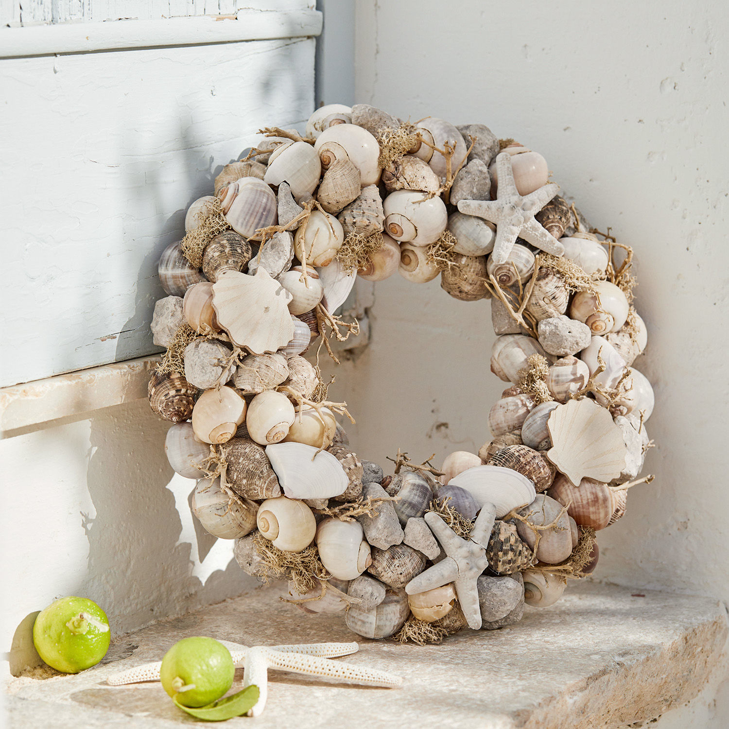 Dieses natürliche Schmuckstück ist mit echten Muscheln und Deko-Seesternen aus Keramik besetzt. Auch getrocknetes irisches Moos, kleine Änder und Deko aus Bimsstein sind hier liebevoll arrangiert. Jedes Stück ist ein liebevoll gearbeitetes Unikat, das Sie gedanklich in eine schillernde Unterwasserwelt entführt. Denken Sie sich bei diesem hübschen Anblick an die See und genießen Sie das Gefühl eines gemütlichen Beach-Cottages in Ihrem Zuhause. Der feine Kranz ist kunstvoll gestaltet und vereint die schönsten Schätze des Meeres. Schaffen Sie damit einen wundervollen Schmuck auf Ihrem Tisch, ins Regal gelegt oder vielleicht an der Wand mit einem Band aufgehängt. So entsteht ein reizender Akzent, der das ganze Jahr über das Flair von Meer und Strand zu Ihnen zaubert und in jeder Saison eine Freude ist. Er passt auch sehr gut zum Landhaus-Stil.