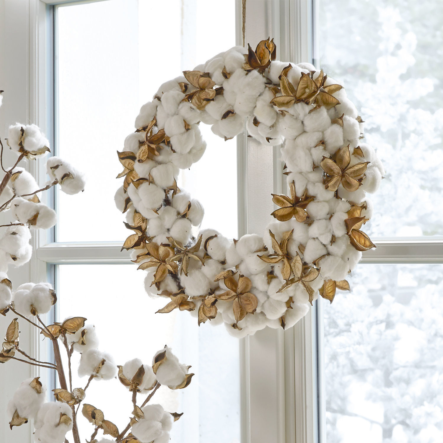 Ein Schmuckstück, das die Schönheit der Natur einfängt. Der wunderhübsche Kranz ist eine perfekte Nachbildung und sieht aus wie frisch aus duftenden Baumwollblüten geflochten. Dabei wurden für diesen Kranz echte Baumwollhülsen verwendet. Somit vereinen sich hier natürliche Materialien mit naturgetreu nachgebildeten Elementen. Der Vorteil: Der Kranz welkt nie und macht somit lange Zeit Freude. Binden Sie vielleicht ein hübsches Band daran und hängen Sie ihn an der Wand oder einem Balken auf. Alternativ lässt der edle Kranz sich auch sehr gut hinlegen und schmückt so den Tisch oder eine Kommode. Freuen Sie sich auf Landhaus-Feeling pur, und das in jeder Saison. Er ist zu wirklich jedem Ambiente eine Zierde.