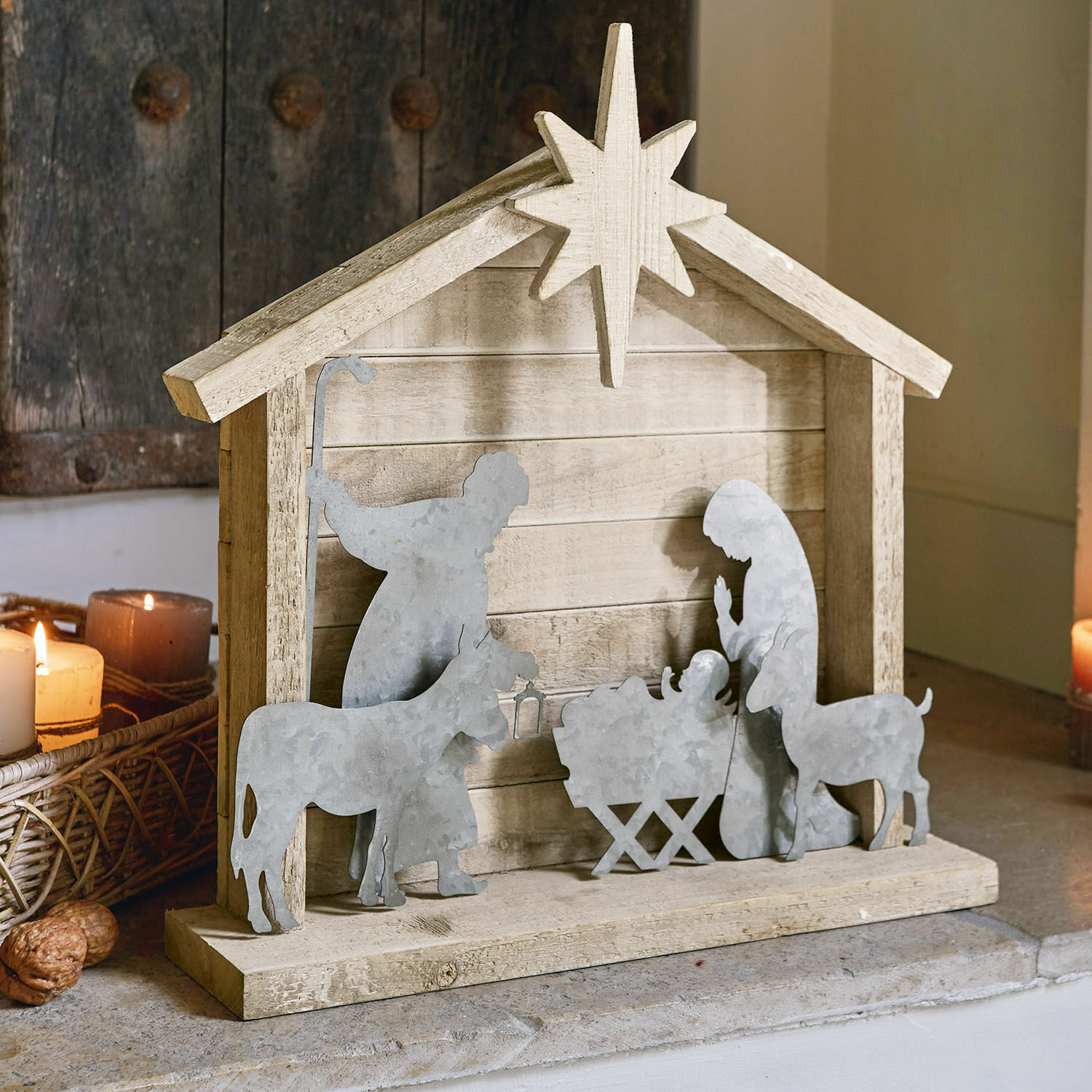 Diese wunderhübsche Krippe zaubert den Geist der Weihnacht in Ihr Haus und lässt die traditionelle Weihnachtsgeschichte charmant auferstehen. Das edle Design besteht aus wertvollem Tannenholz in Kombination mit Eisen. Es ist recht groß und hat eine schöne, natürliche Optik. Die Krippe samt fixierten Figuren kommt bereits komplett aufgebaut bei Ihnen an, sodass sie sofort einsatzbereit ist. Lassen Sie sie pur wirken oder dekorieren Sie vielleicht Nüsse und Tannenzweige hinzu – so wird es richtig heimelig, und die Weihnachtszeit richtig besinnlich. Josef, Maria, das Jesuskind und die Tiere im Stall sind hier wunderbar zeitlos in Szene gesetzt, sodass Sie sich zu jedem Fest wieder über diese stilvolle Krippe freuen können.