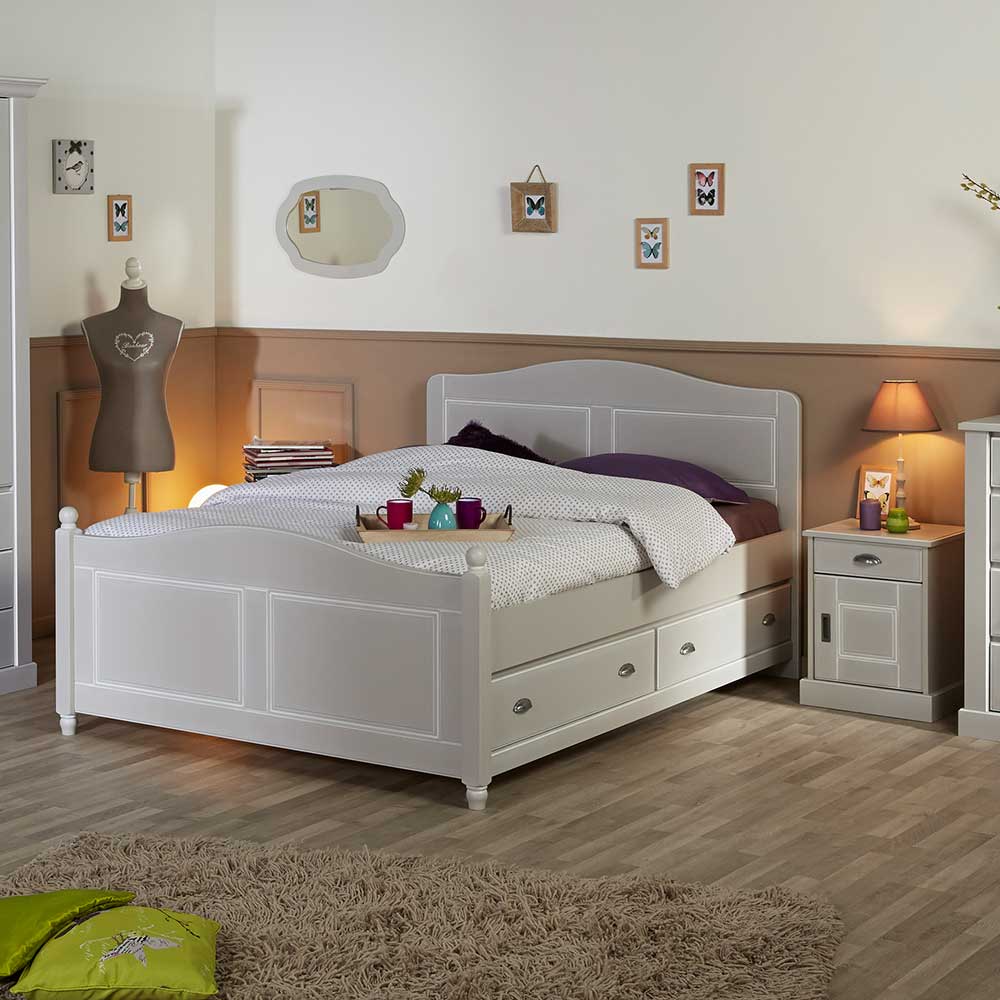 Landhaus Doppelbett in Hellgrau Nachtkommoden (3-teilig)