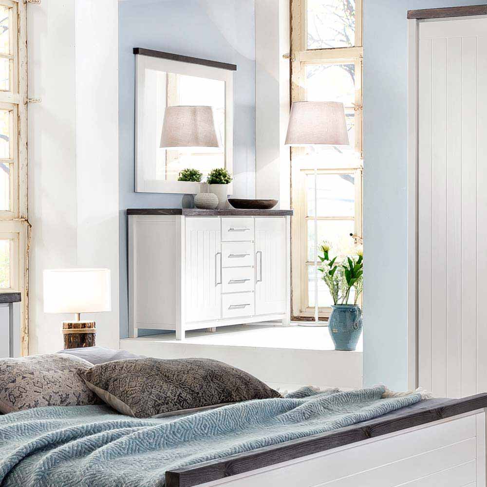 Landhaus Sideboard in Weiß lasiert Braun Kiefer massiv