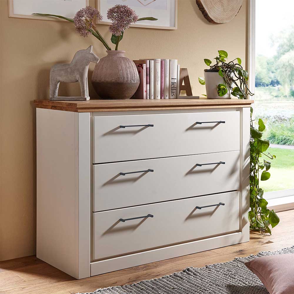 Landhauskommode in Creme Weiß und Eichefarben massiv