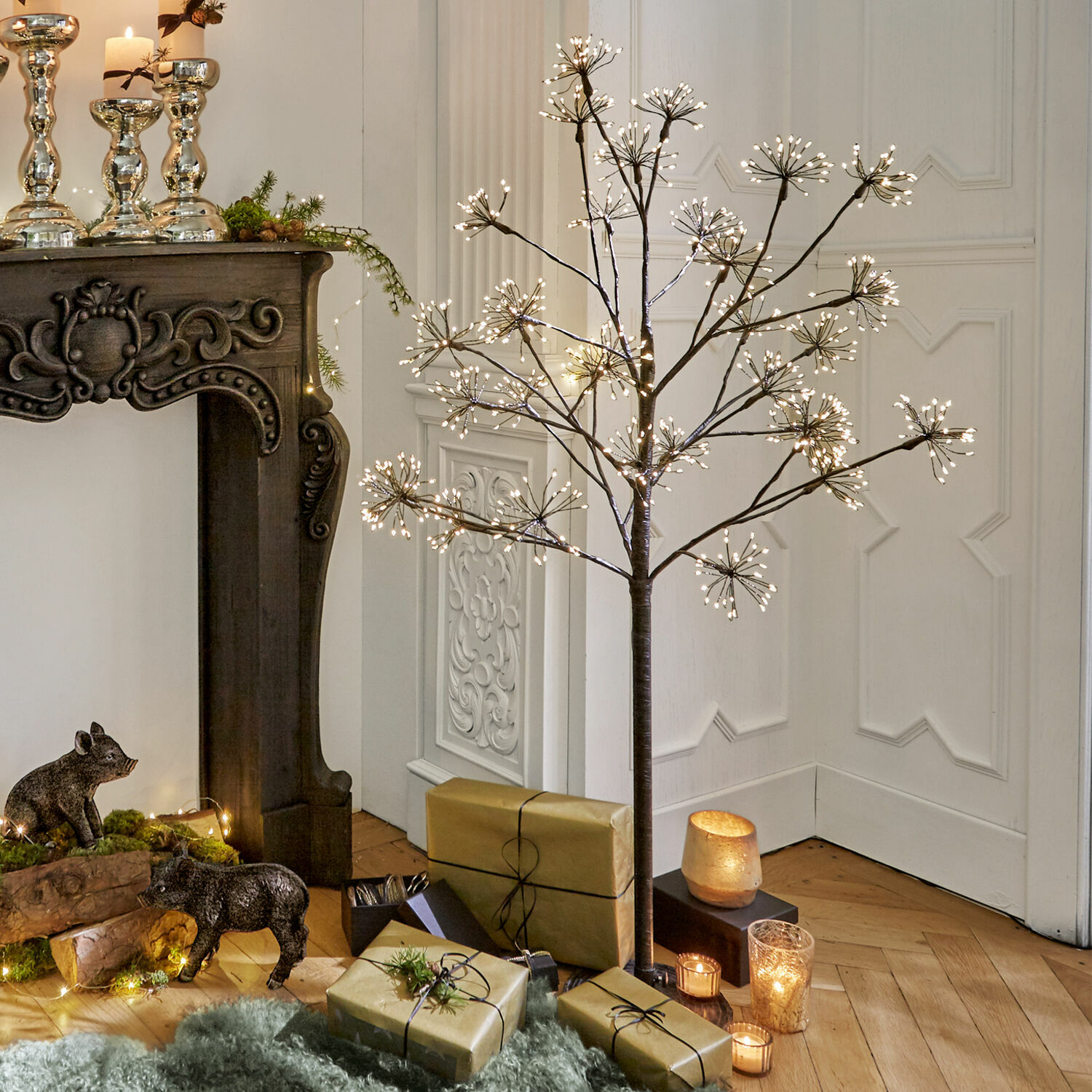 Leuchtende Blätter, wunderbare Illumination, festliche Stimmung: Der strombetriebene Baum schafft in der Advents- und Weihnachtszeit die richtige Atmosphäre. Sobald draußen die Sonne versunken ist, lassen Sie ihn mit seinen vielen bezaubernden LED-Lampen erstrahlen. Über 800 kleine Leuchten sorgen für eine festliche Beleuchtung. Freuen Sie sich am schönen Spiel des Lichts auf Ihren Möbeln, das der bezaubernde Dekobaum Ihrem Interieur schenkt. Mit seiner doch recht stattlichen Größe macht er in jedem Raum Eindruck und zieht die Blicke auf sich. Er wirkt wie ein echter Baum – davon zeugt auch die Bodenständer, der in Form einer Baumscheibe gefertigt wurde. Die zahlreichen Äste können ganz individuell gebogen werden, sodass Sie den Baum ganz nach Belieben gestalten können. Natürlich können Sie auch Schmuckanhänger oder Glaskugeln daran befestigen. So eignet sich dieser Baum nicht nur für die Weihnachtszeit. Das ganze Jahr hindurch verbreitet dieses Accessoire eine bezaubernde Leuchtstimmung. Ob im Eingangsbereich, im Wohnzimmer, Speisezimmer oder im Wintergarten – der Baum verleiht Ihrem heimeligen Ambiente einen besonderen Glanz, ganz gleich, wo Sie ihn platzieren. Einfach schön!